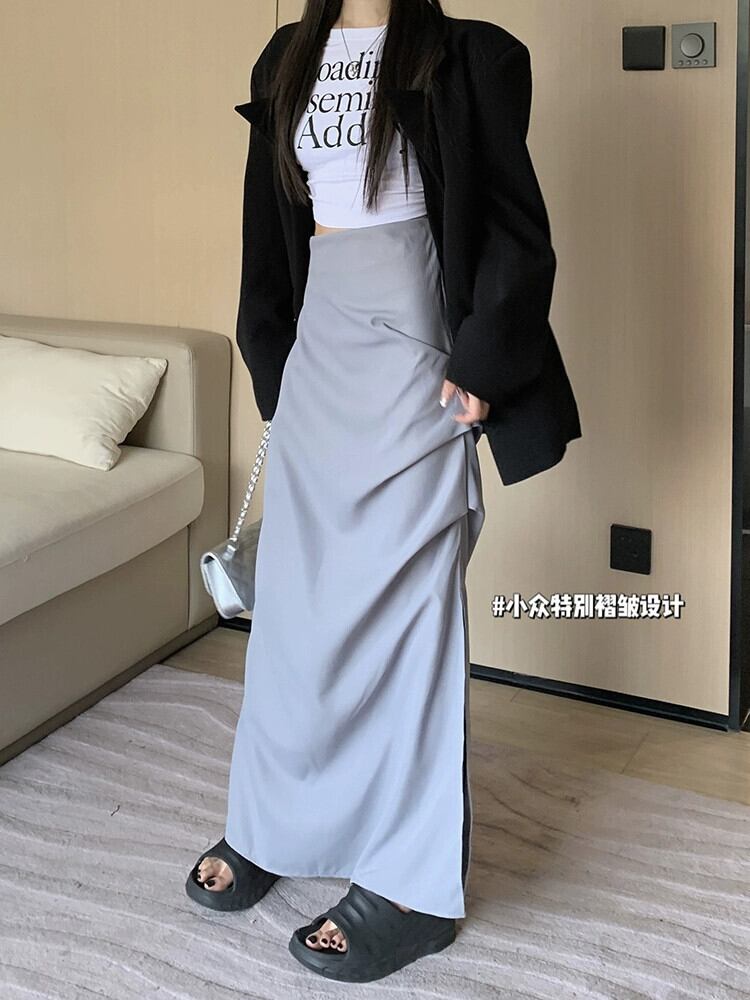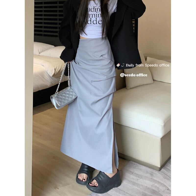 センスプリーツスリットスカートレディース2023夏新作オールマッチハイウエスト薄底Aラインミモレ丈スカート ハイウェスト サマー 夏物 0921999752377938