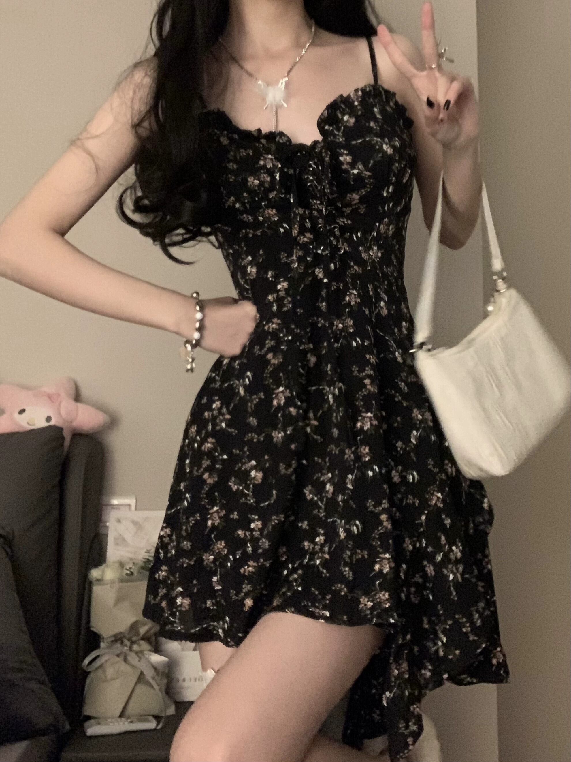 純粋な欲望風花柄スリングドレス女性の夏の 2023 新しい不規則なオールマッチ自己修養と薄い底スカート サマー 夏物 0921942808796927