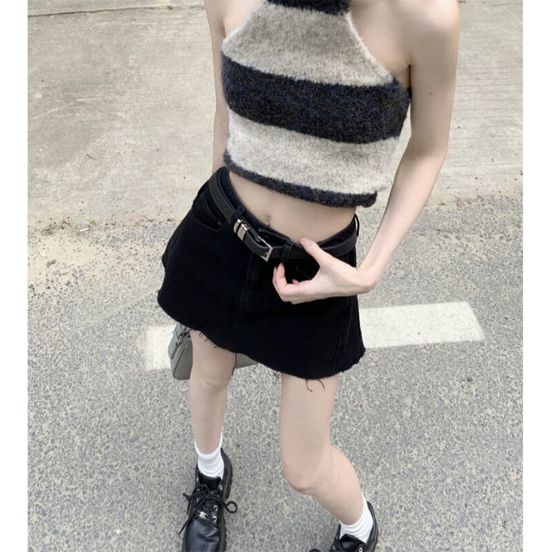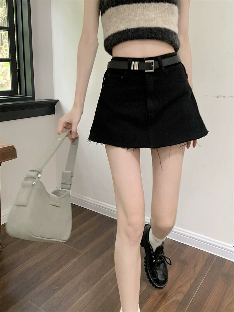 黒ハイウエストスリムデニムスカート女性の夏の 2023 新しいオールマッチ気質 A ラインショートスカート潮 ハイウェスト ブラック サマー 夏物 Aライン 0921993292251527