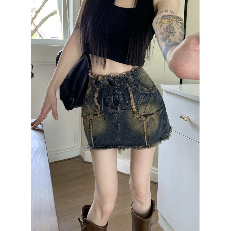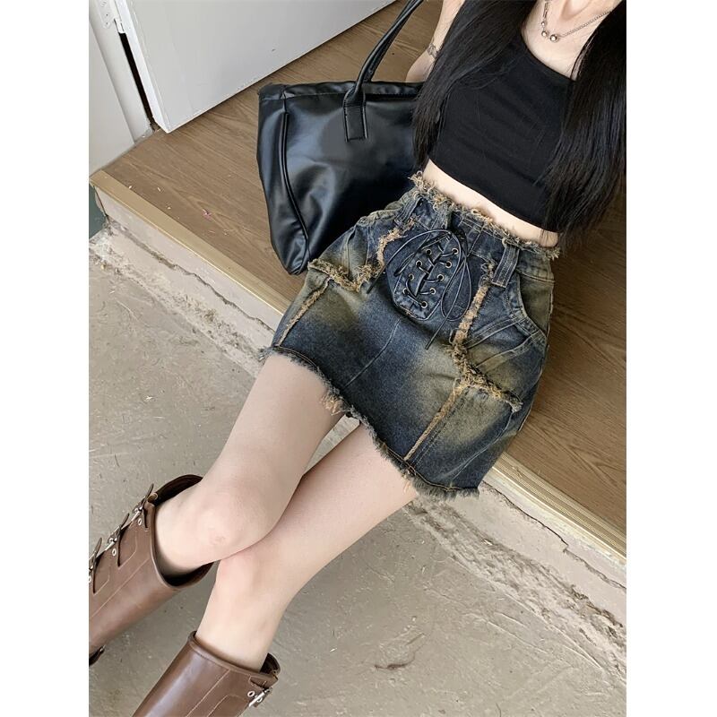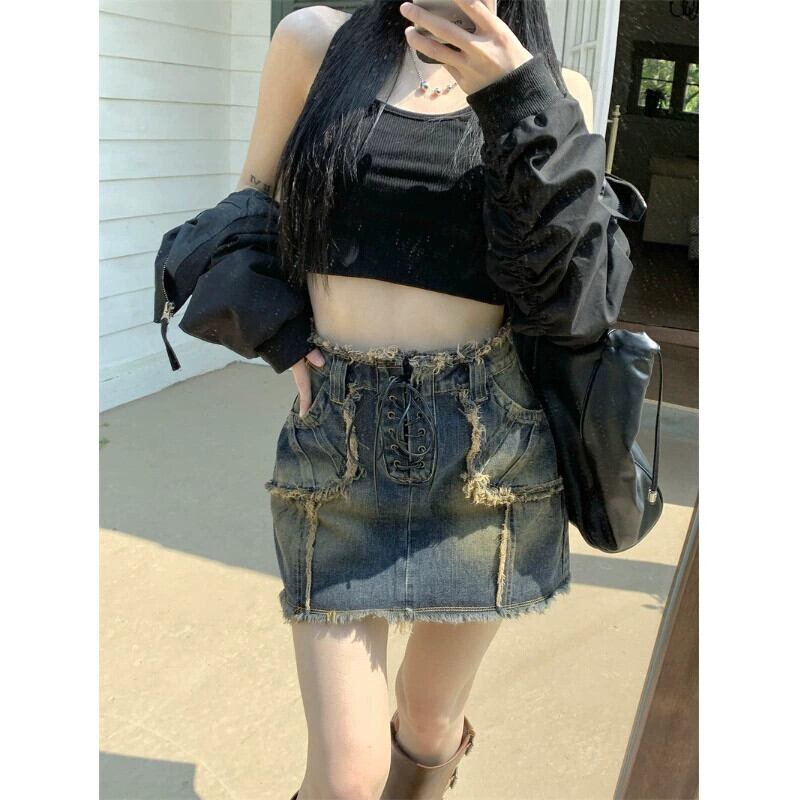 アメリカンレトロローエッジストラップ防光スカート女性の夏の 2023 新しいスリムフィットと薄底デニムスカート サマー 夏物 0921983818973534