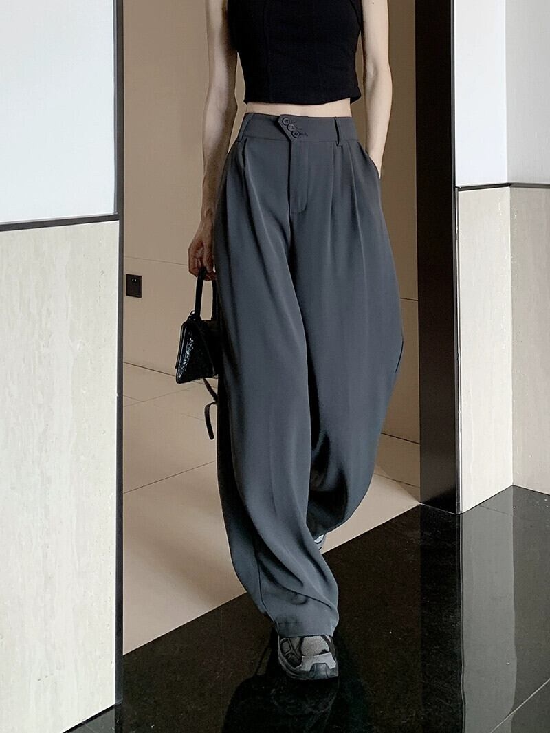 ドレープストレートカジュアルスーツパンツ女性の春の気質ハイエンド小さなズボンルーズワイドレッグパンツズボン スプリング 春物 0921992875009350