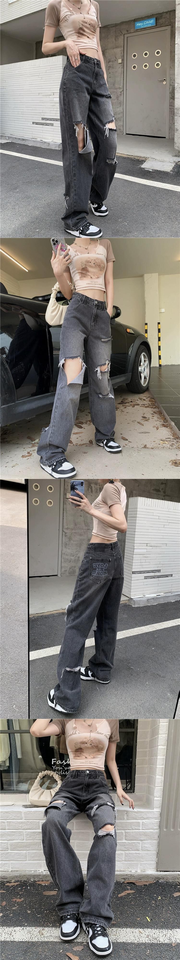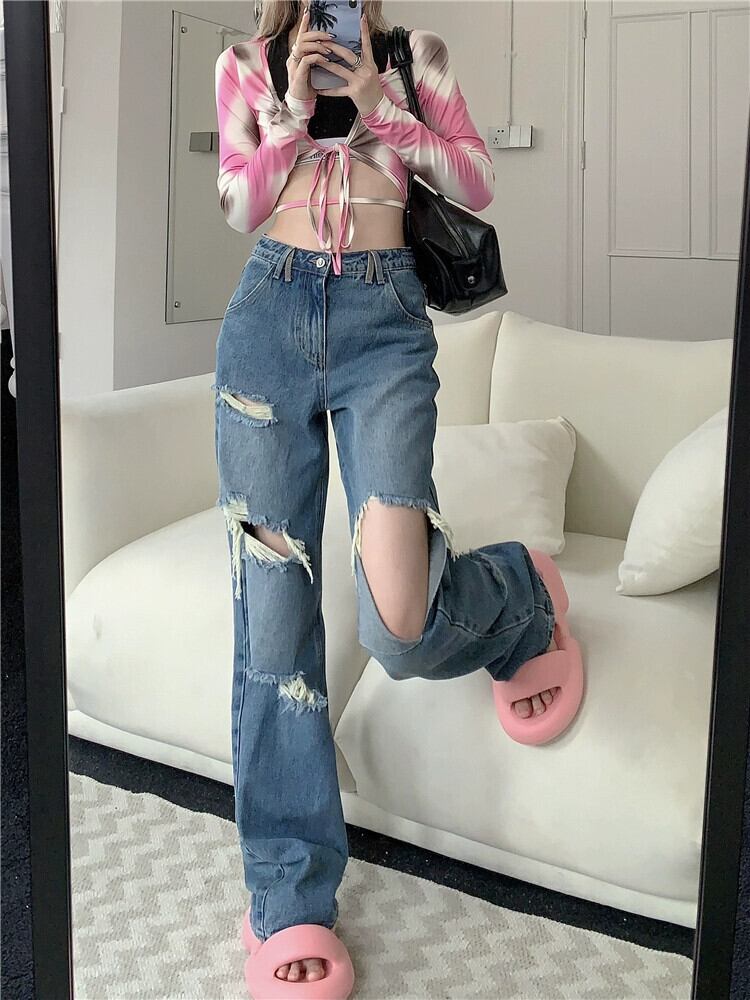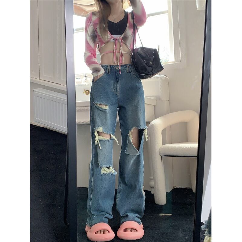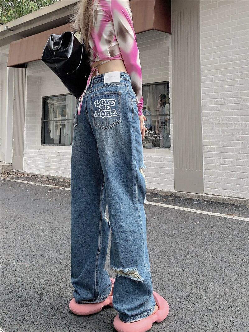 ホットリップドストレートジーンズレディース夏インタイドウォッシュルーズデザイン感覚ニッチワイドレッグパンツズボン サマー 夏物 0921976492277890