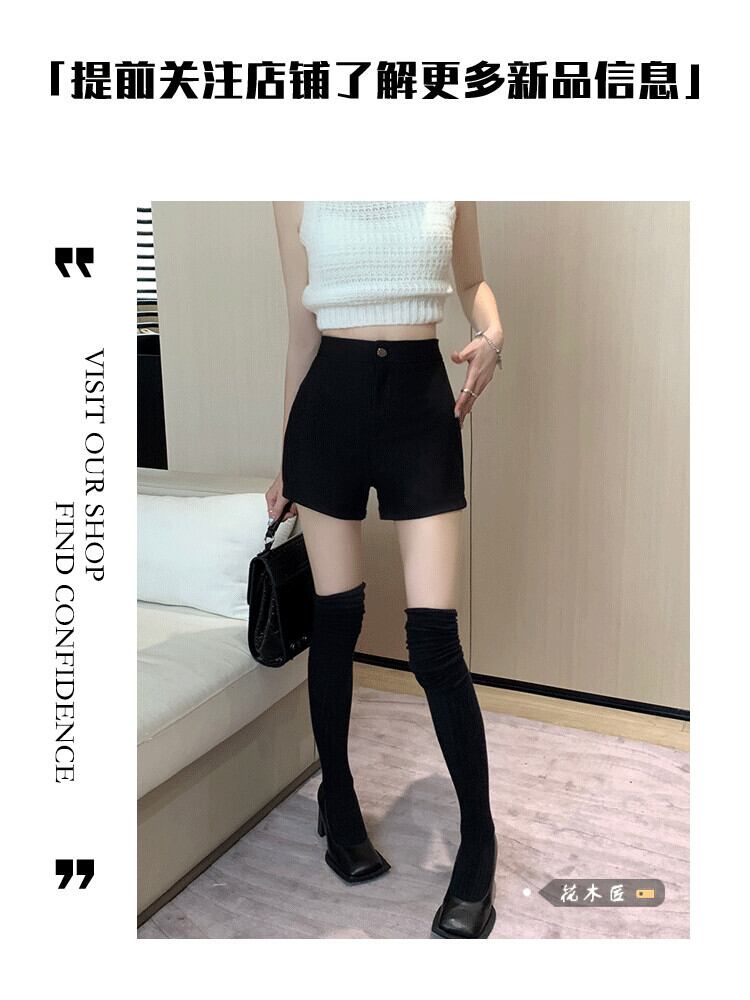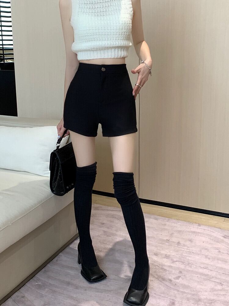 黒弾性スリムショーツ婦人服夏スパイスガールズスリム脚ロングホットパンツウエスト小さなパンツ ブラック エラスティック 伸縮 サマー 夏物 ブルマー 0921915827038125