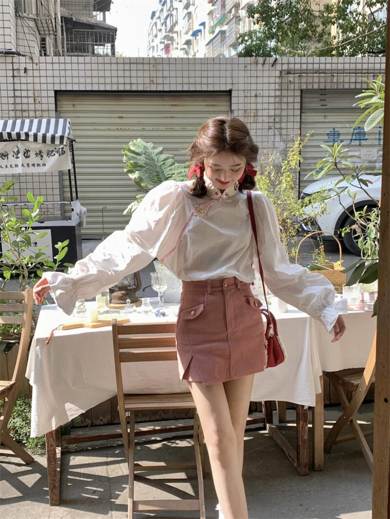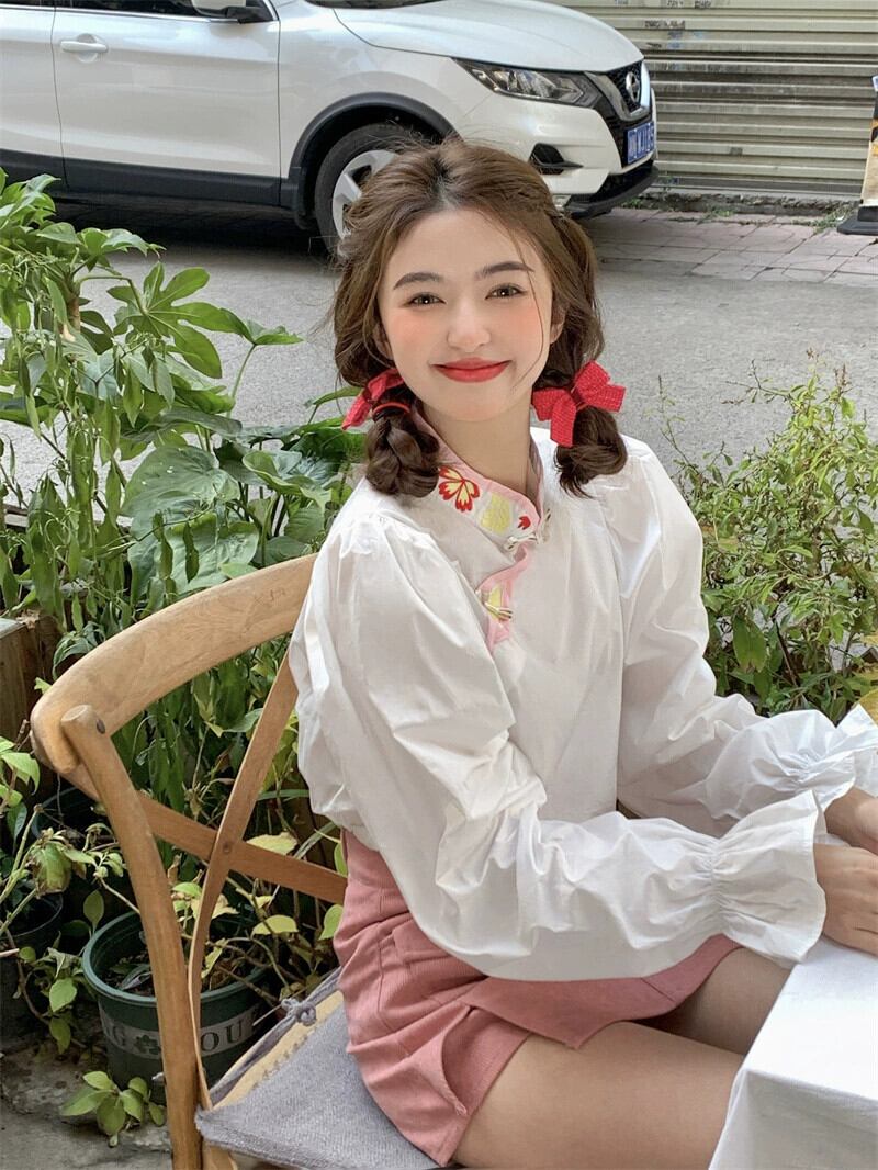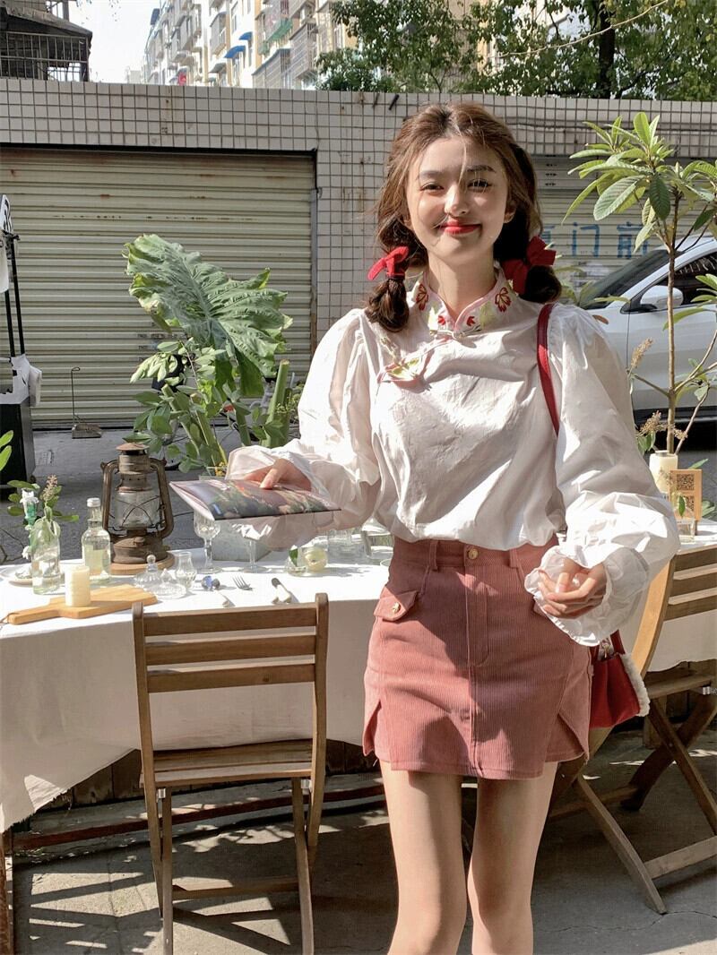 ニッチレトロ刺繍ボタン長袖シャツレディース2023年夏新作ゆったり万能デザインシャツトップ ロング サマー 夏物 0921931246884701