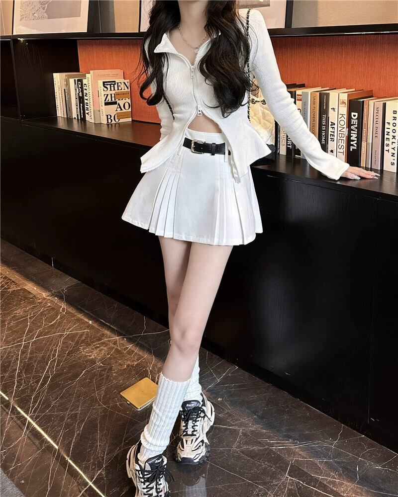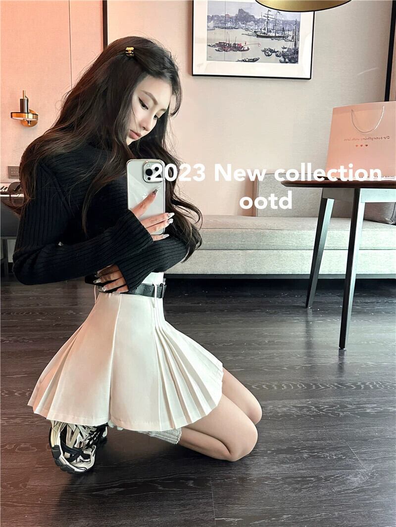 ハイウエストとベルト付きスリムスカートのバージョンの女性の2023年夏の新しいオールマッチデザインセンスAラインプリーツスカート ハイウェスト サマー 夏物 ハーネス 0921973805284225