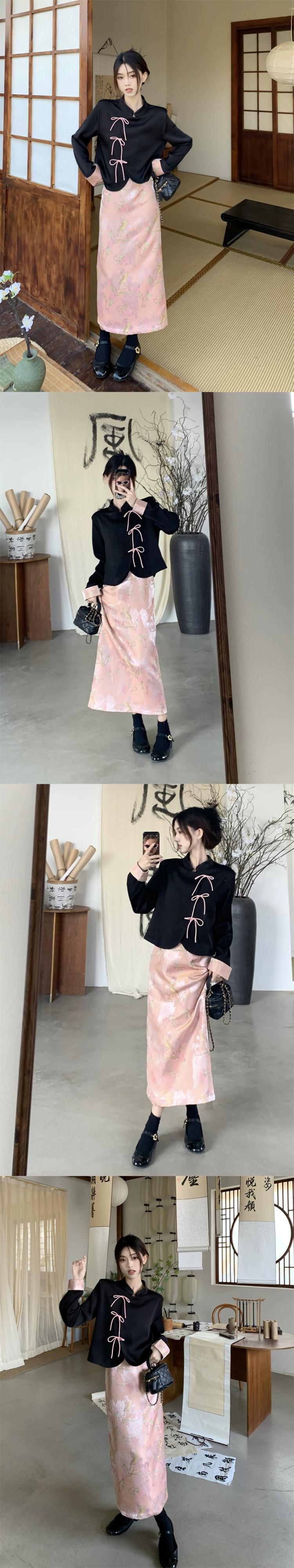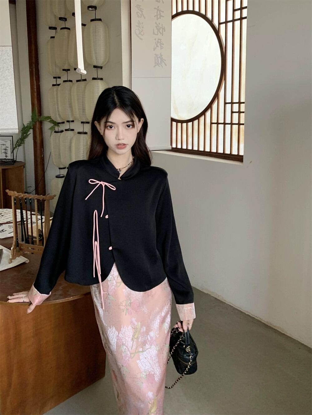 中国風のレトロなスタンドカラー長袖シャツ女性の 2023 夏の新しいデザインセンスレースアップバックル気質シャツ ロング サマー 夏物 0921951533734552