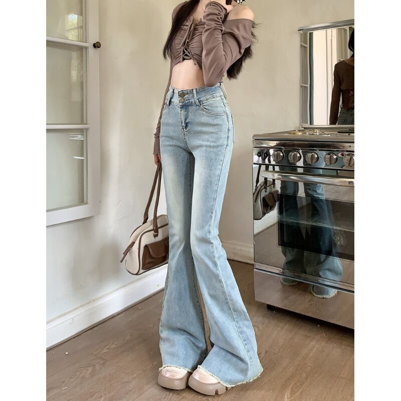 スパイスガールスタイルレトロウエストスリムジーンズ女性夏 2023 多用途生エッジスリムマイクロフレアパンツ レッド サマー 夏物 0921987938828241