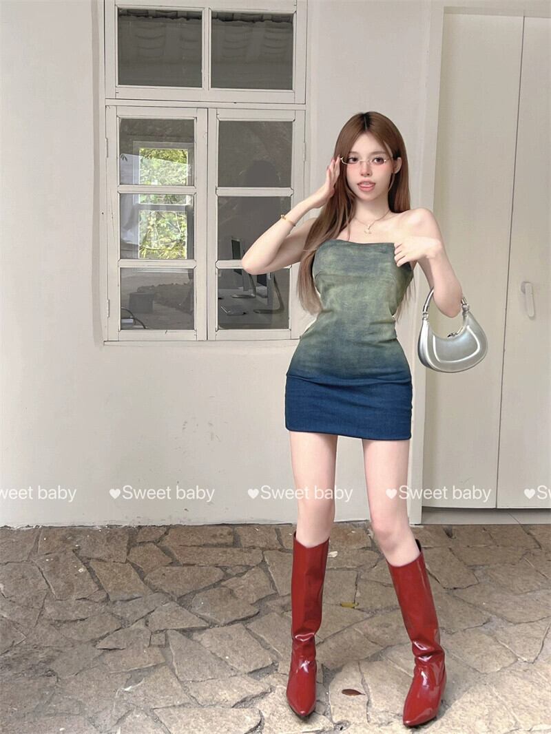 グラデーションタイダイ弾性デニムチューブトップスカート女性の夏の 2023 新しいオールマッチ自己修養と薄い底バッグヒップスカート エラスティック 伸縮 サマー 夏物 0921973071560080