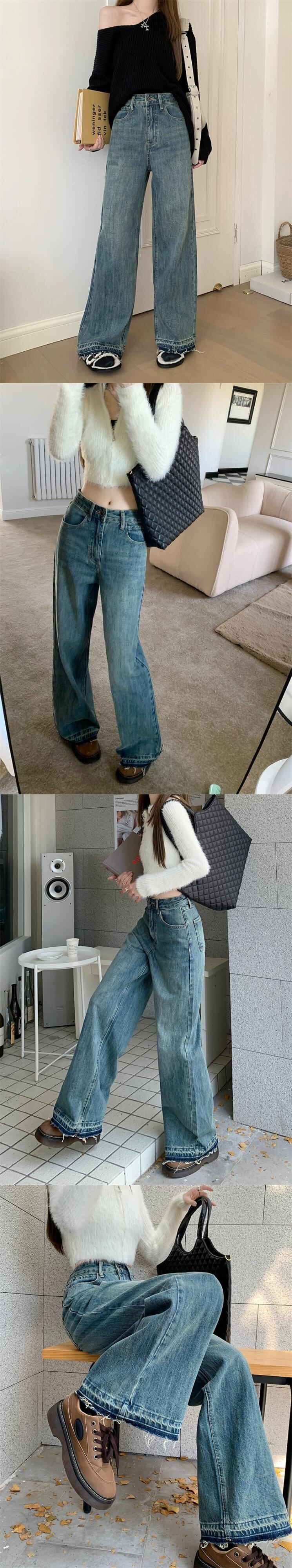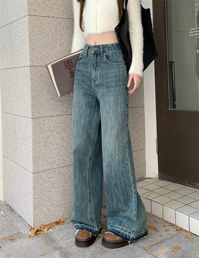 レトロローエッジジーンズレディース夏デザインセンスニッチワイドレッグパンツハイウエストスリムパンツルーズモップパンツ ハイウェスト サマー 夏物 0921999282773855