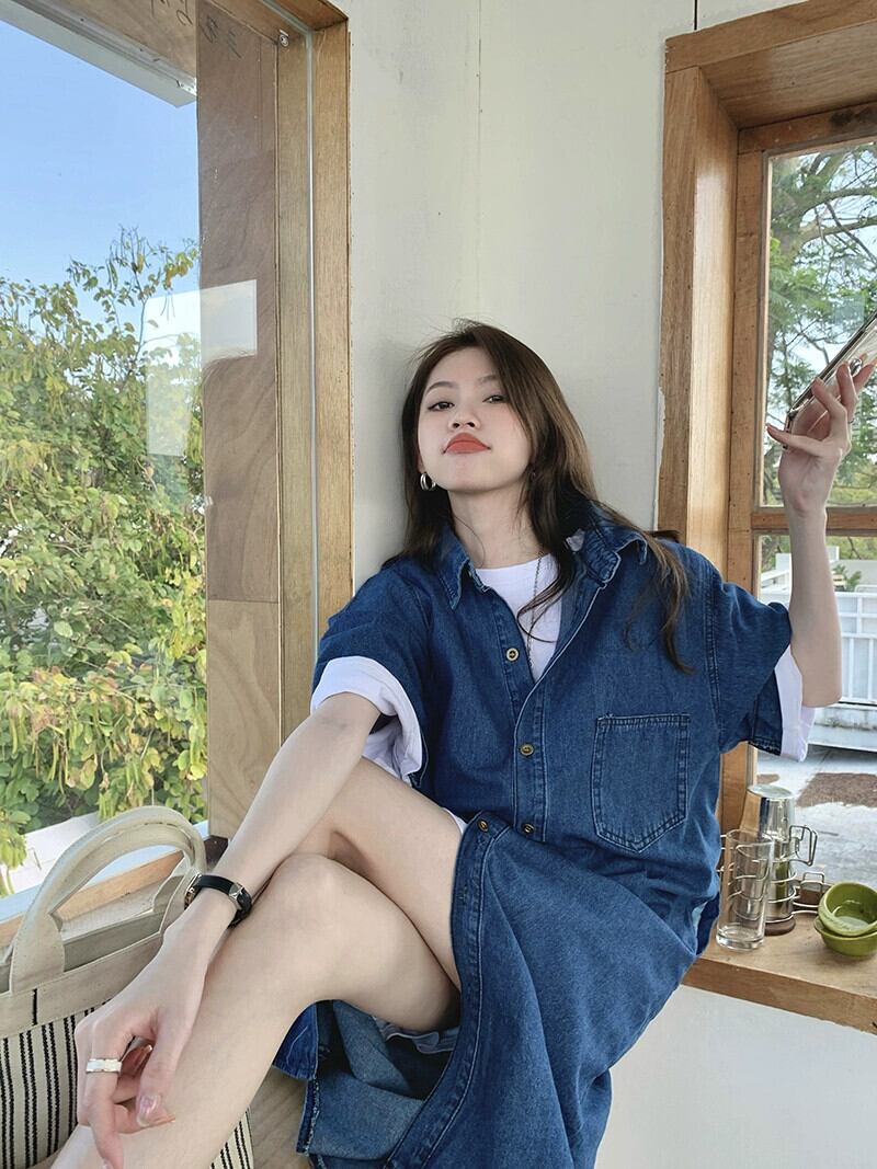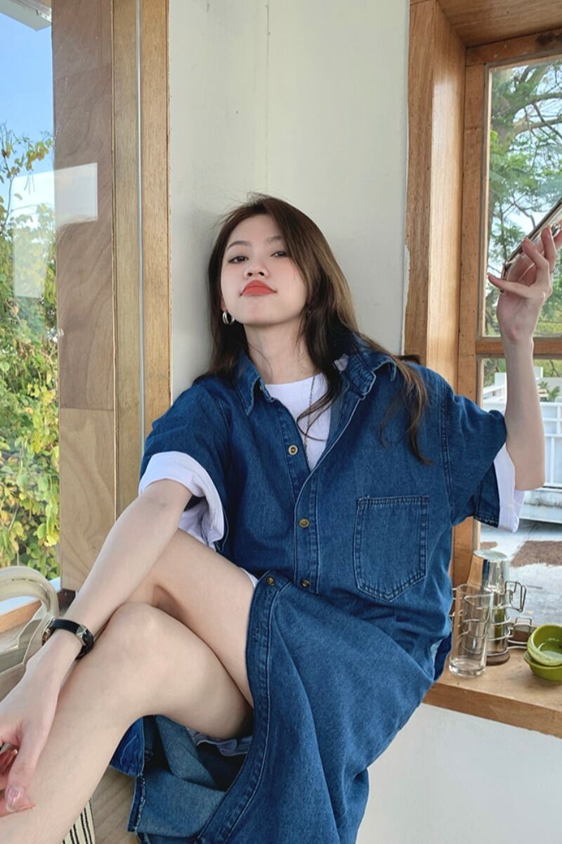 香港スタイルのカジュアルデニムドレス女性の夏のレトロ半袖シャツスカート年齢を軽減するスリムな気質ミドル丈スカート サマー 夏物 092193712711306