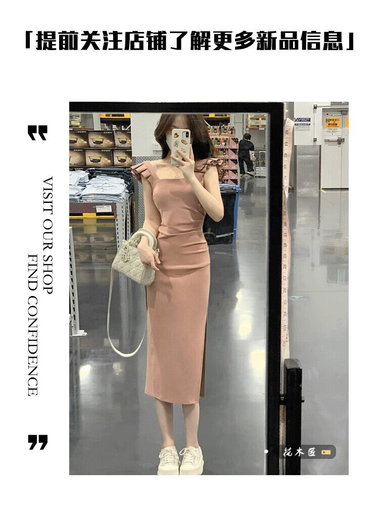 フランスの気質小さなフライングスリーブドレスの女性の夏の2023新しいミドル丈の優しい風の気質スリットスカート サマー 夏物 0921981166269330
