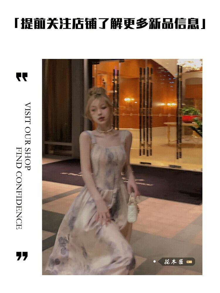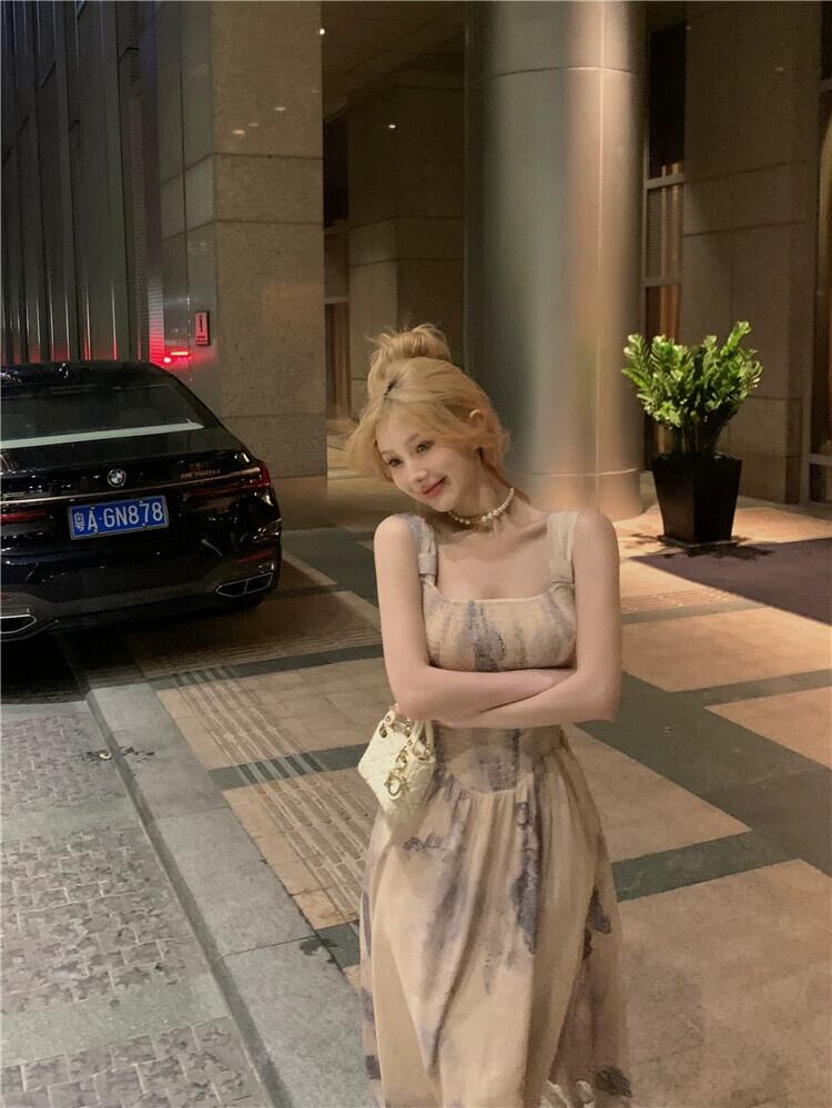 気質ハイレベル水墨画サスペンダードレスレディース夏のレトロプリントロングスカートスリムウエストAラインスカート サマー 夏物 0921915770729635
