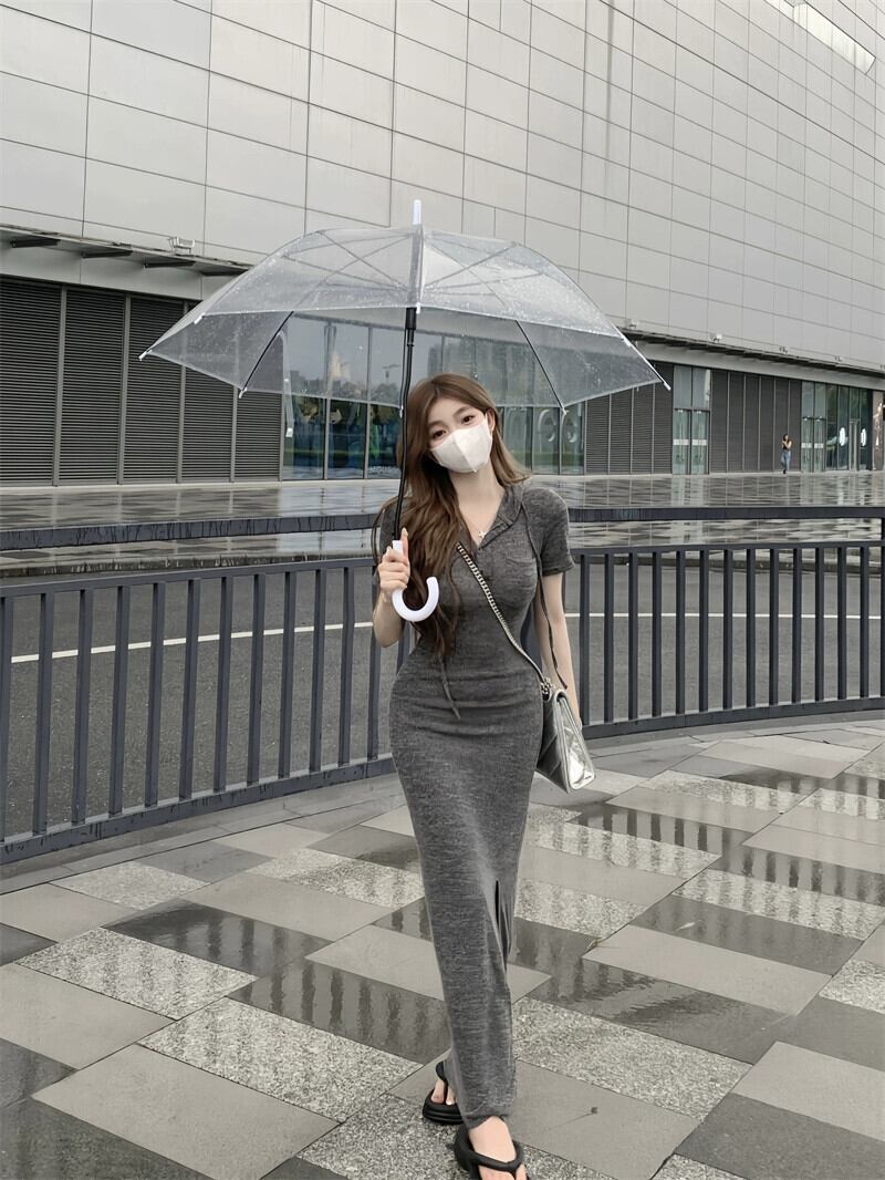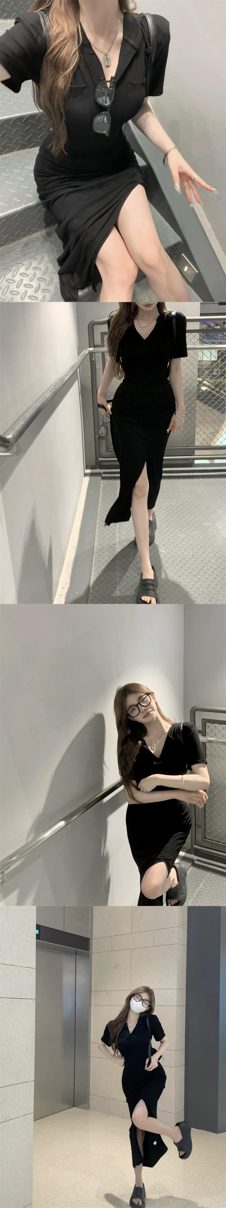 純粋な欲望の風スリットフード付き半袖ドレスの女性の夏の 2023 新しい気質スリムスリムパッケージヒップミッドレングススカート サマー 夏物 0921958751663308