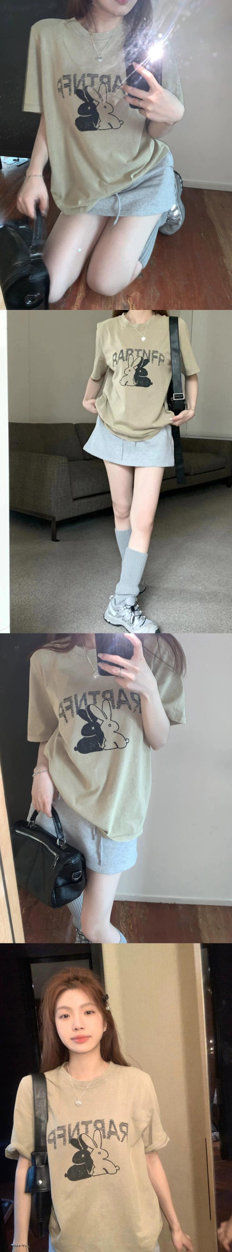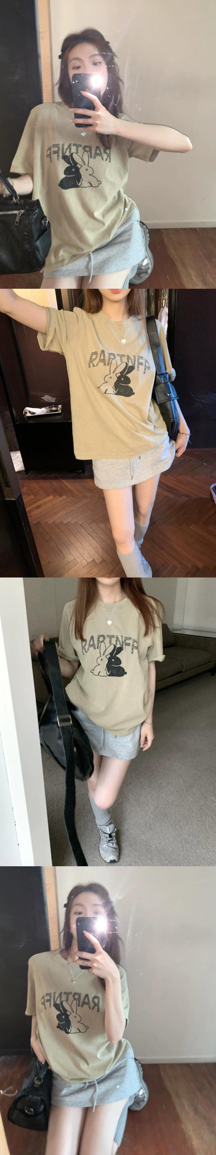 ウサギのバージョンのプリント半袖 T シャツの女性の夏の新しい怠惰な風緩いカジュアルなデザイン感覚のニッチ トップス サマー 夏物 Tシャツ 0921964925254140