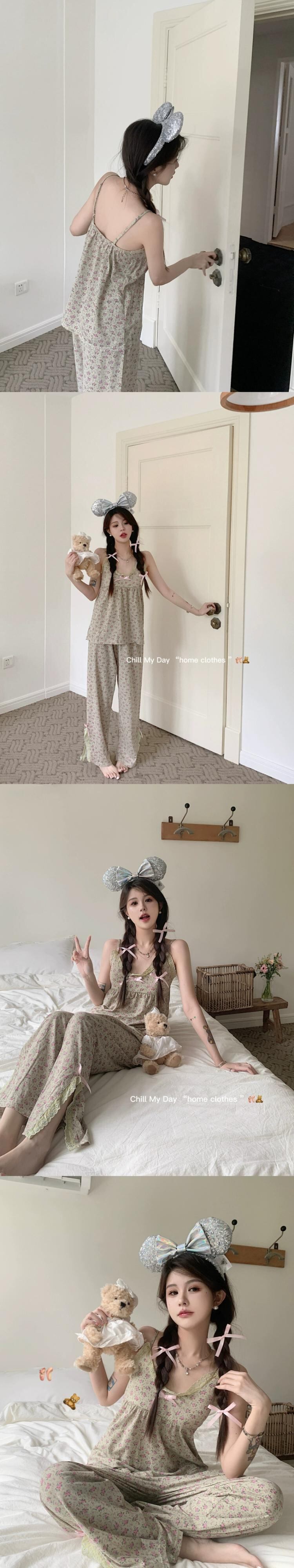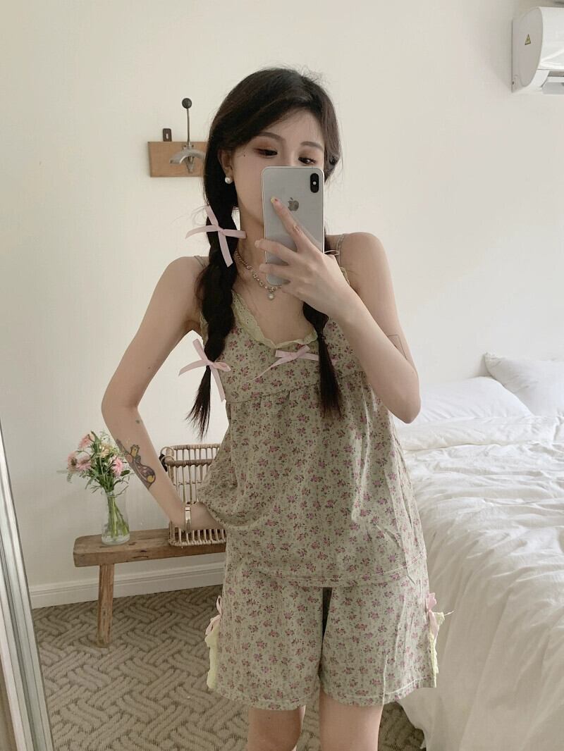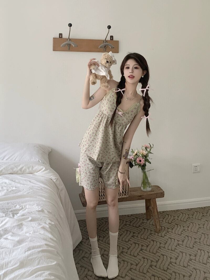 甘くて素敵なパジャマセット レディース 2023年夏新作 胸パッド付き サスペンダートップパジャマ ホームサービス 2点セット 大人ガーリー スウィート キュート カジュアル サマー 夏物 かわいい 0921999146721177