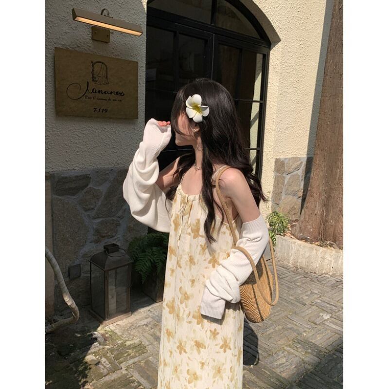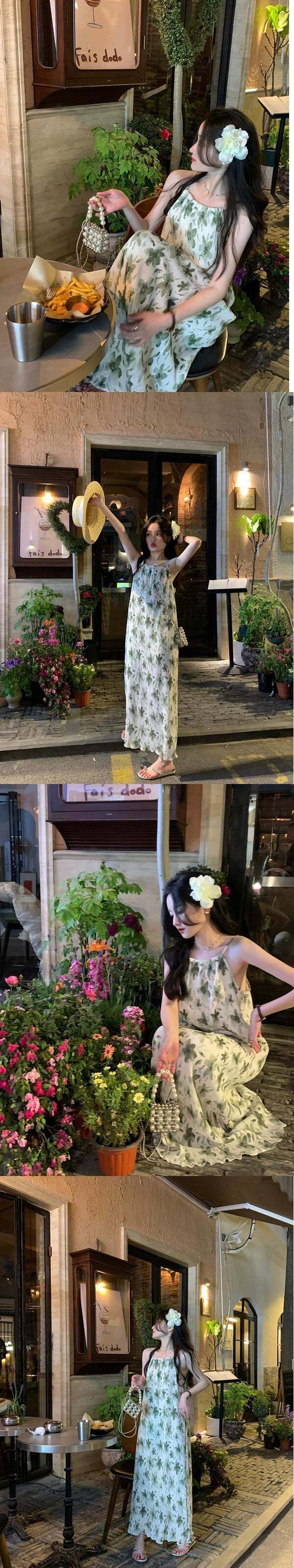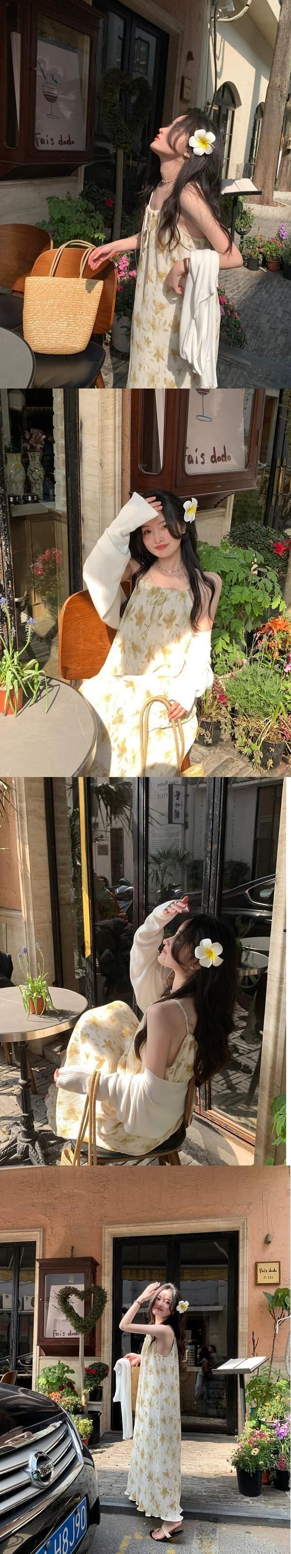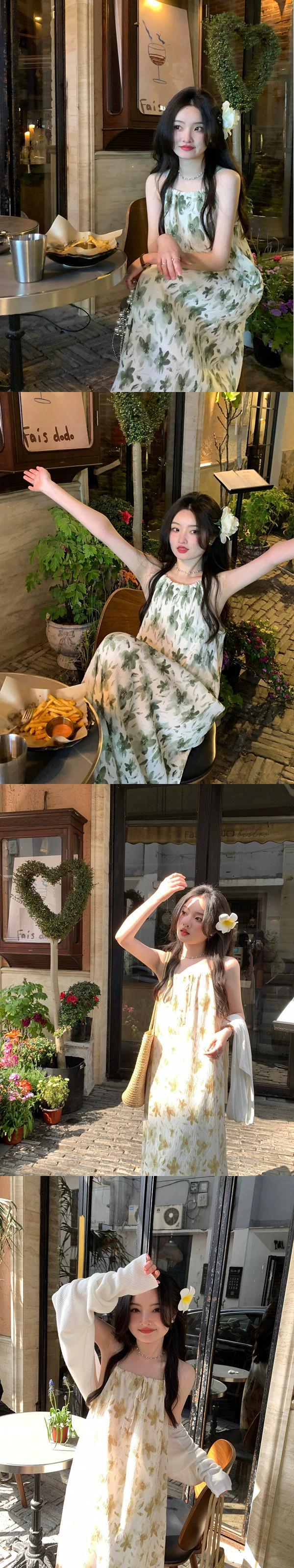 フレンチフローラルサスペンダードレスレディース2023年夏新作オールマッチデザインゆったり薄手ミドル丈スカート サマー 夏物 花柄 0921988888155495