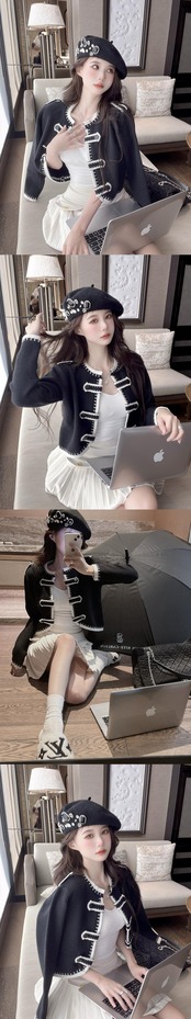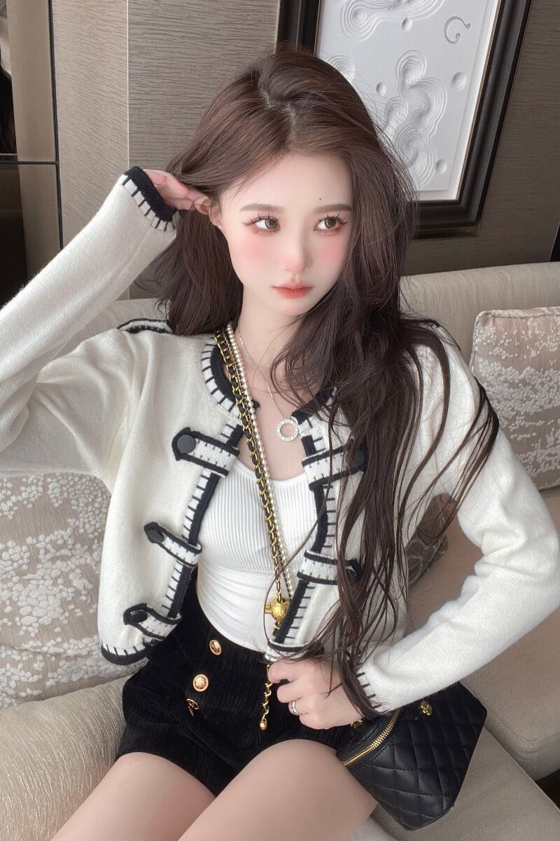 フレンチスタイルの高級長袖セータージャケット女性の2023春の新しいスタイルの気質セレブスタイルのヒットカラーニットカーディガン潮 ロング スプリング 春物 0921980218946269