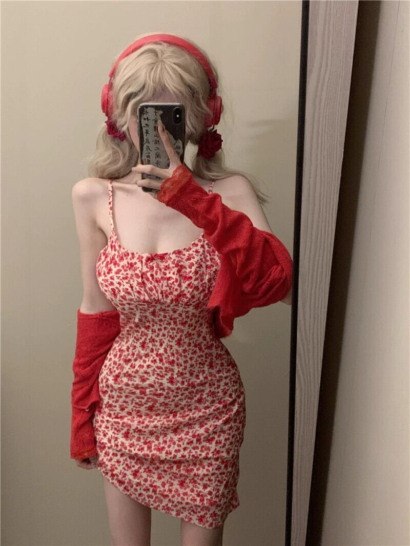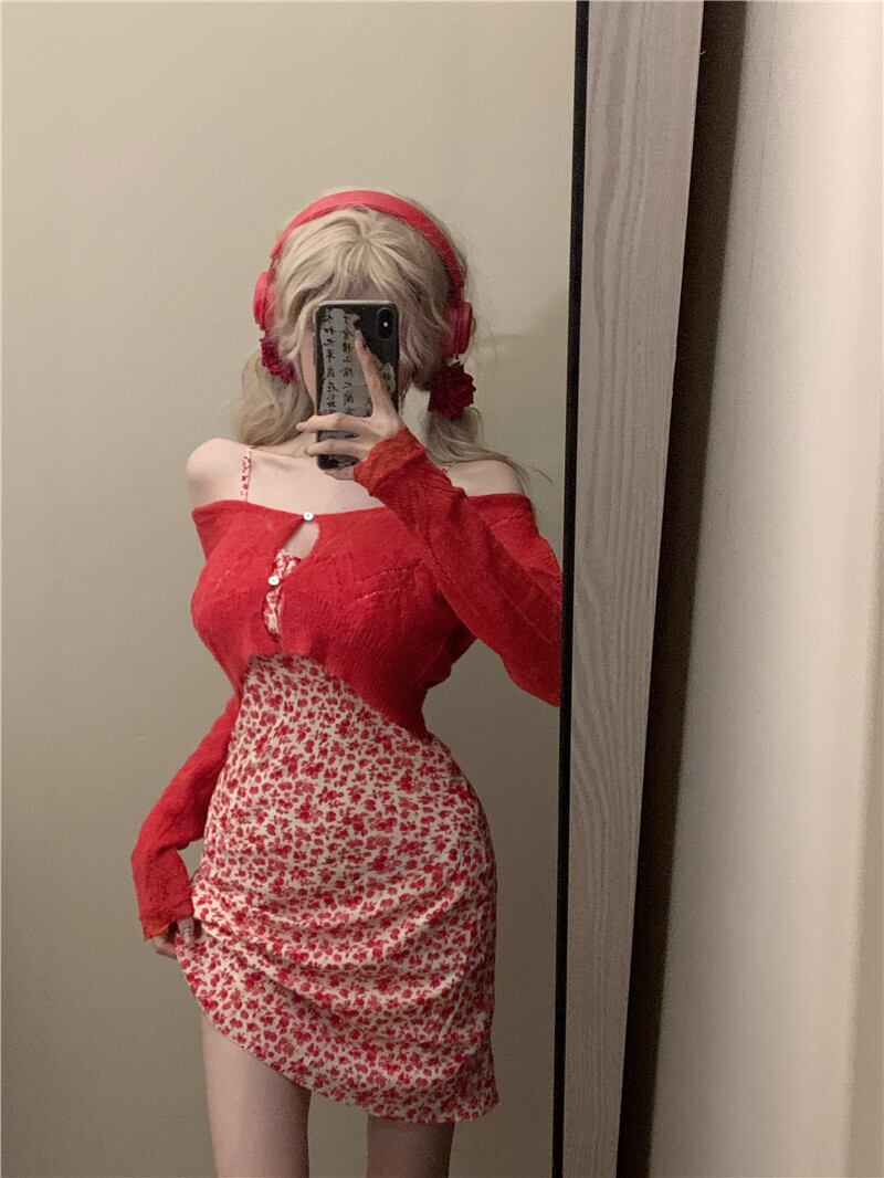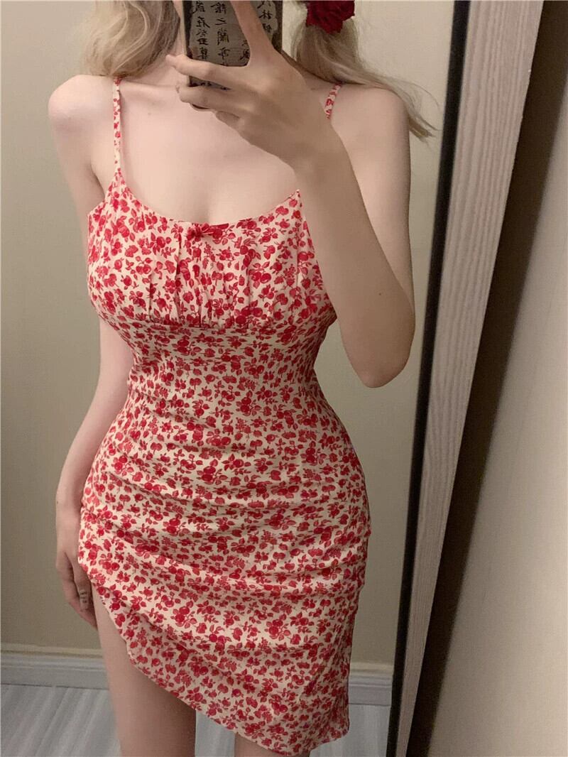 甘くてスパイシーな花柄サスペンダードレス女性の夏の 2023 新しいセクシーなスリムなインナースカートとヒップスカート 大人ガーリー スウィート キュート カジュアル サマー 夏物 0921942045687815
