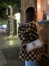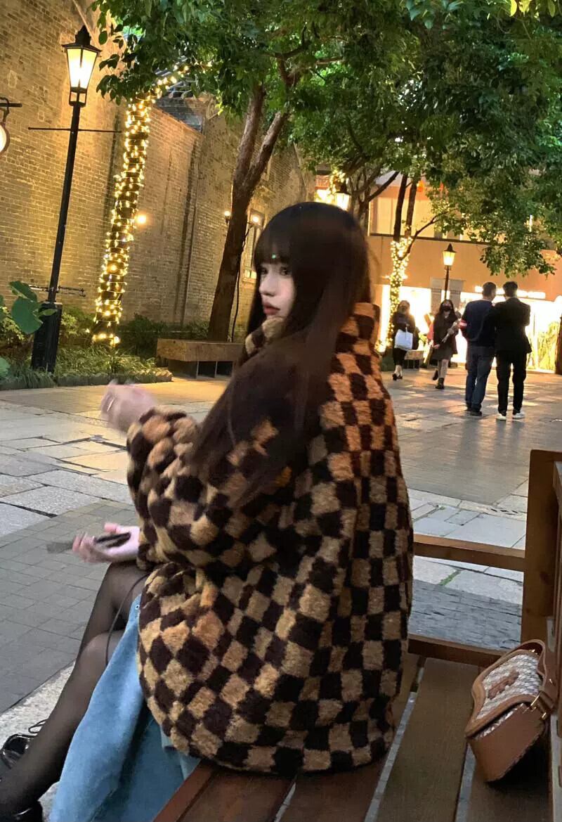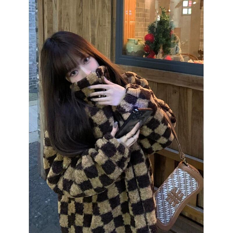 レトロカラーコントラストチェック柄模造ラムウールコットンコート女性の冬の 2023 新しいファッションオールマッチ暖かいコットンコート ウィンター 冬物 0921993594957965