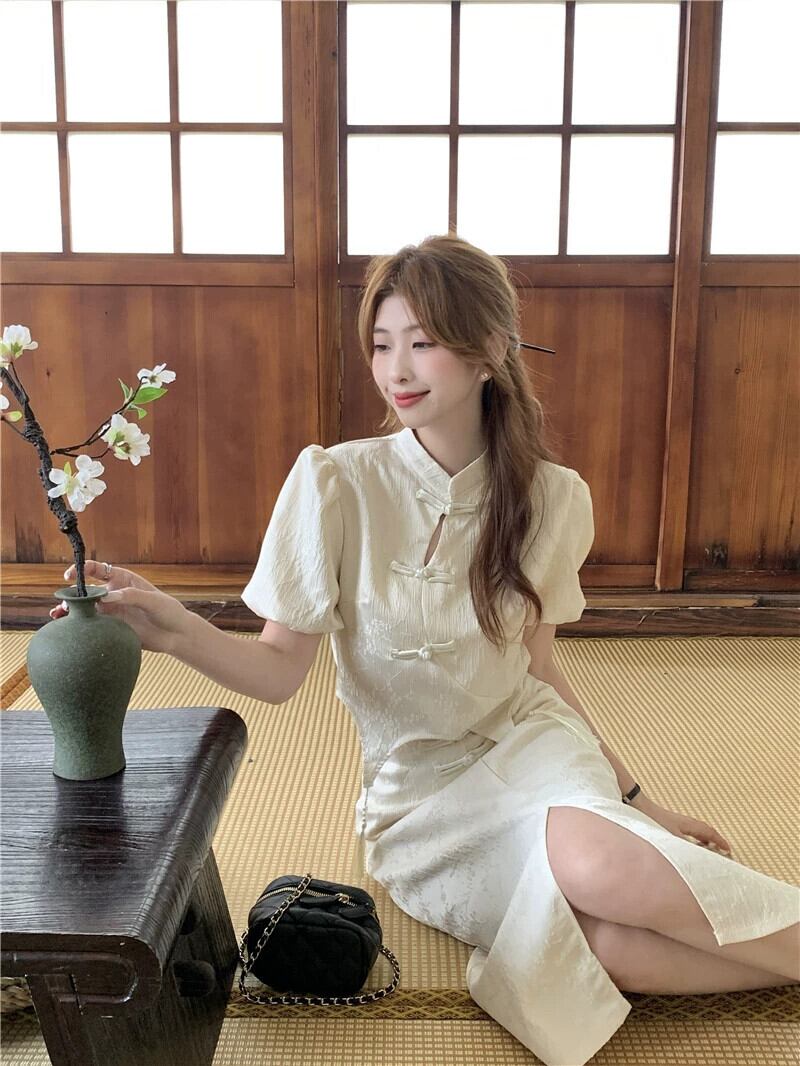 中国風国民風スーツスカートレディース 2023 夏の新作ショートバックルトップスリムスリットハーフスカート 2 点セット サマー 夏物 0921910546995841
