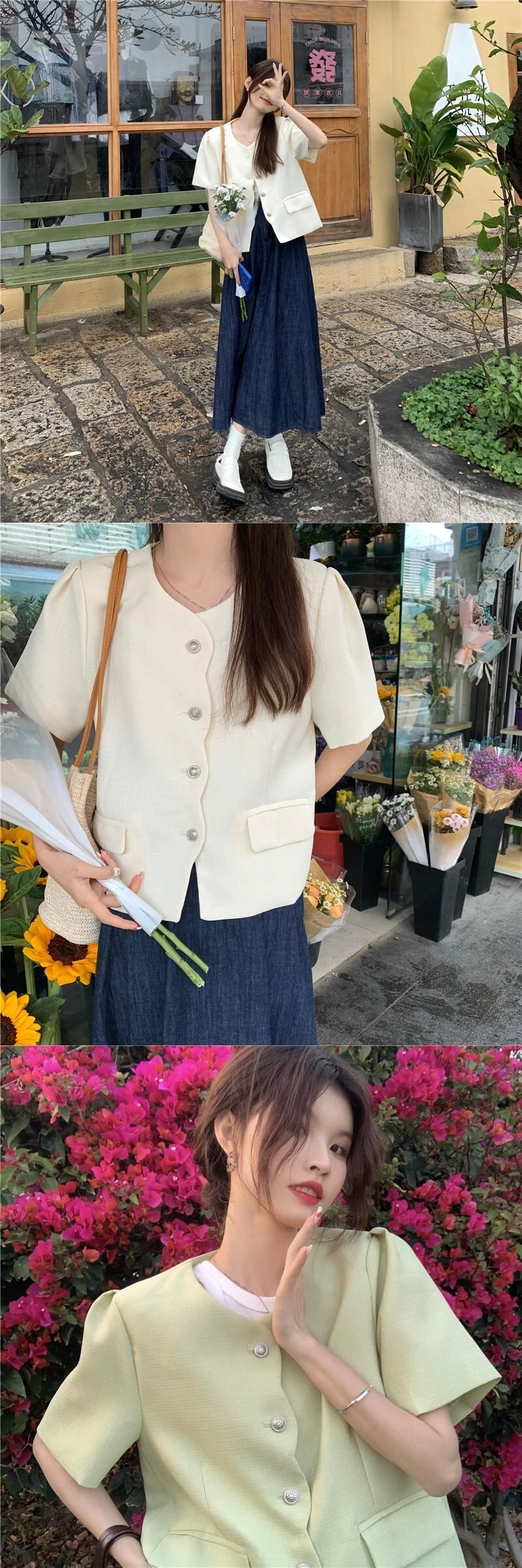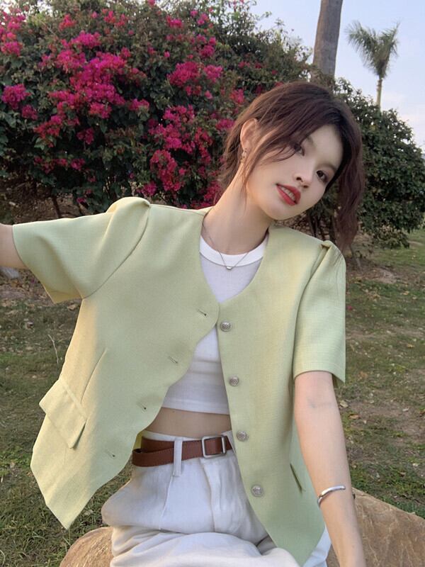 バージョンのラウンドネック気質小さな香りの風のスーツジャケット女性の夏の 2023 新しい痩身オールマッチ半袖スーツジャケット サマー 夏物 Oネック 0921961569547182