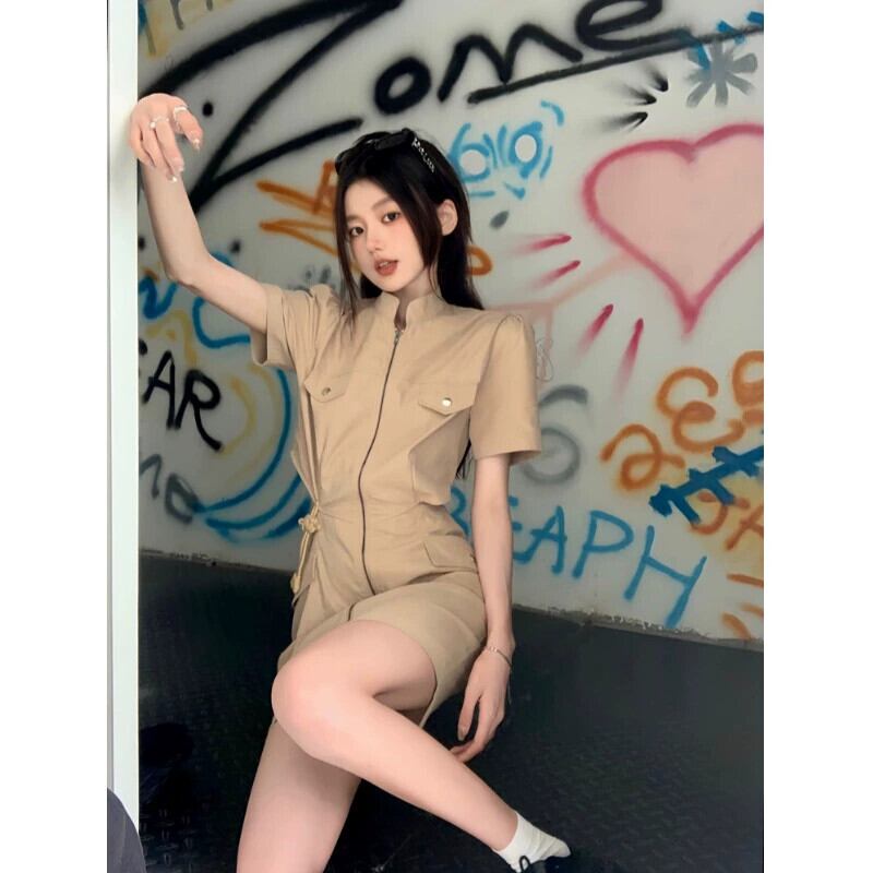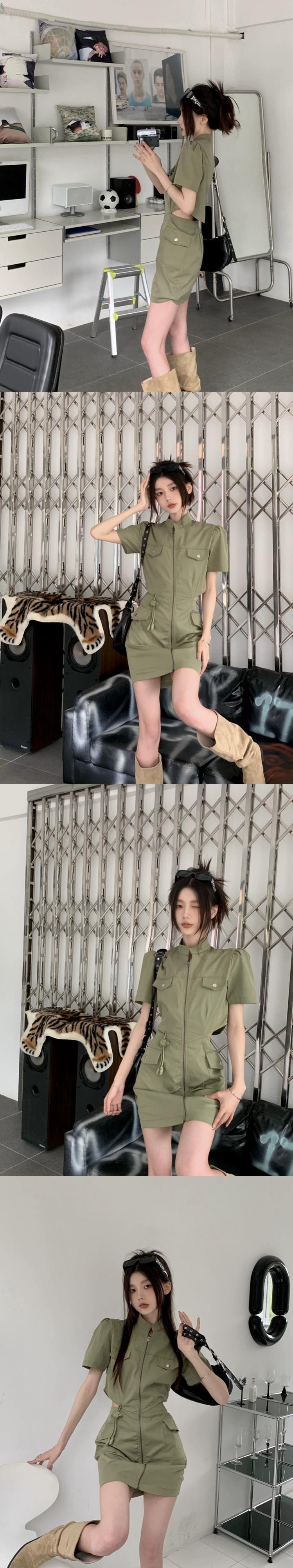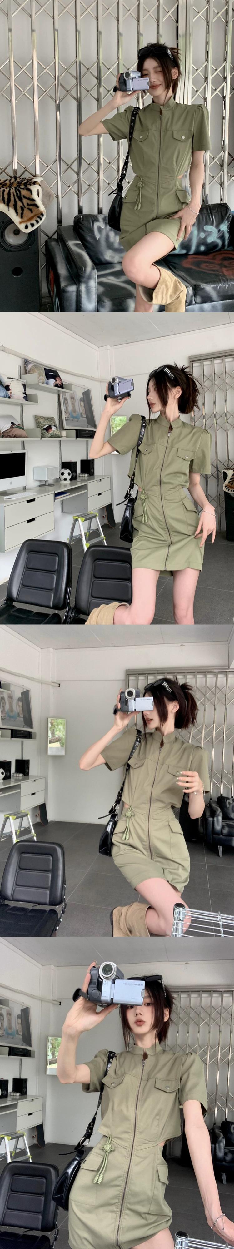 中国風のレトロなスタンドアップカラー半袖ドレスの女性の夏の 2023 新しいスリムフィットスリムジッパーツーリングショートスカート潮 サマー 夏物 0921982021179969