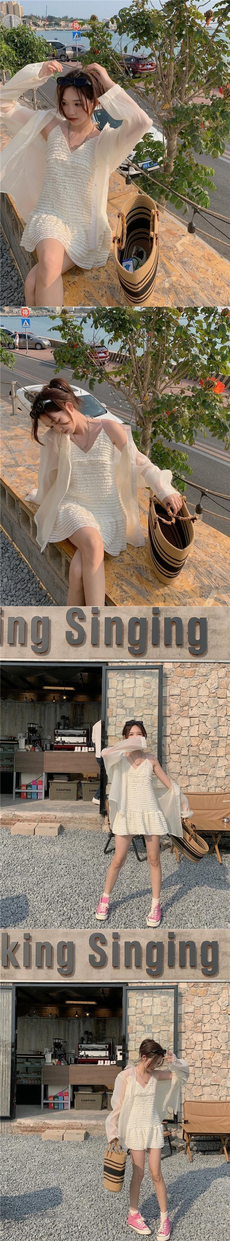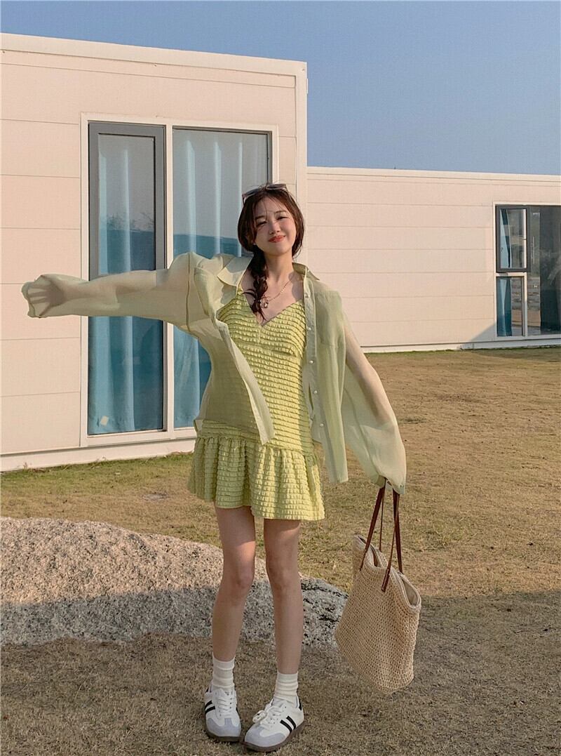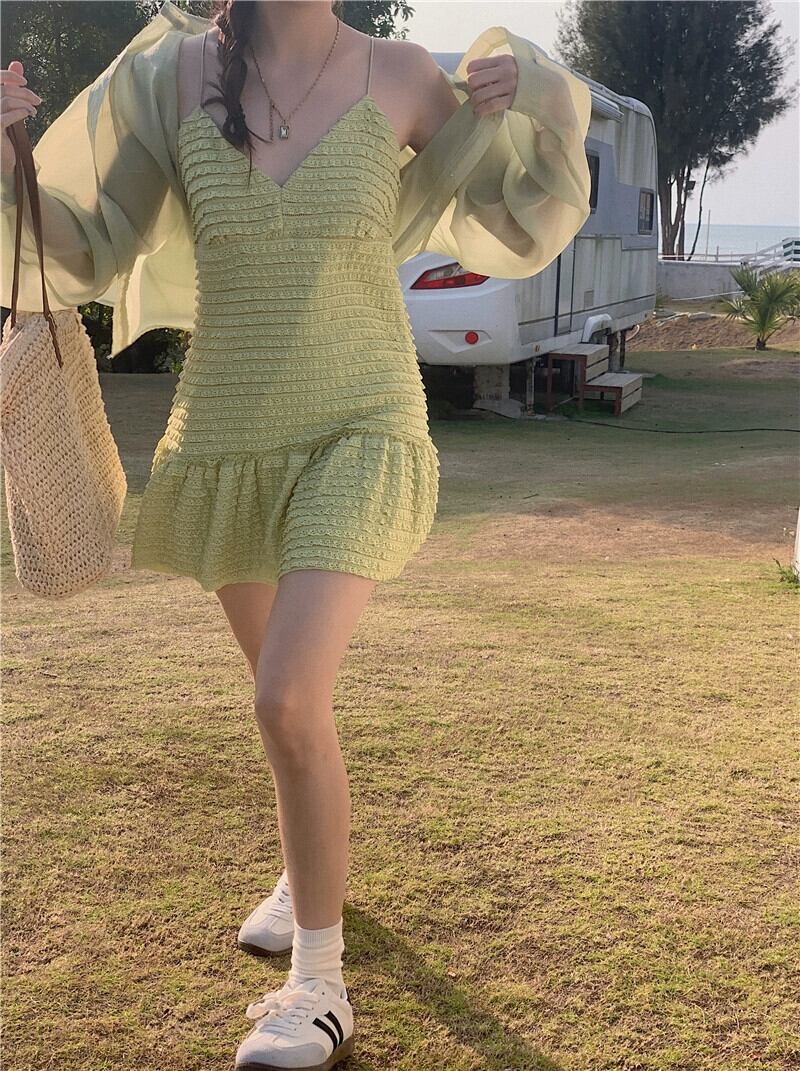 甘いスタイルのサスペンダードレスの女性の夏の 2023 新しい小さな新鮮なソリッドカラー痩身オールマッチ A ラインスカート 大人ガーリー スウィート キュート カジュアル サマー 夏物 Aライン 0921926386769265