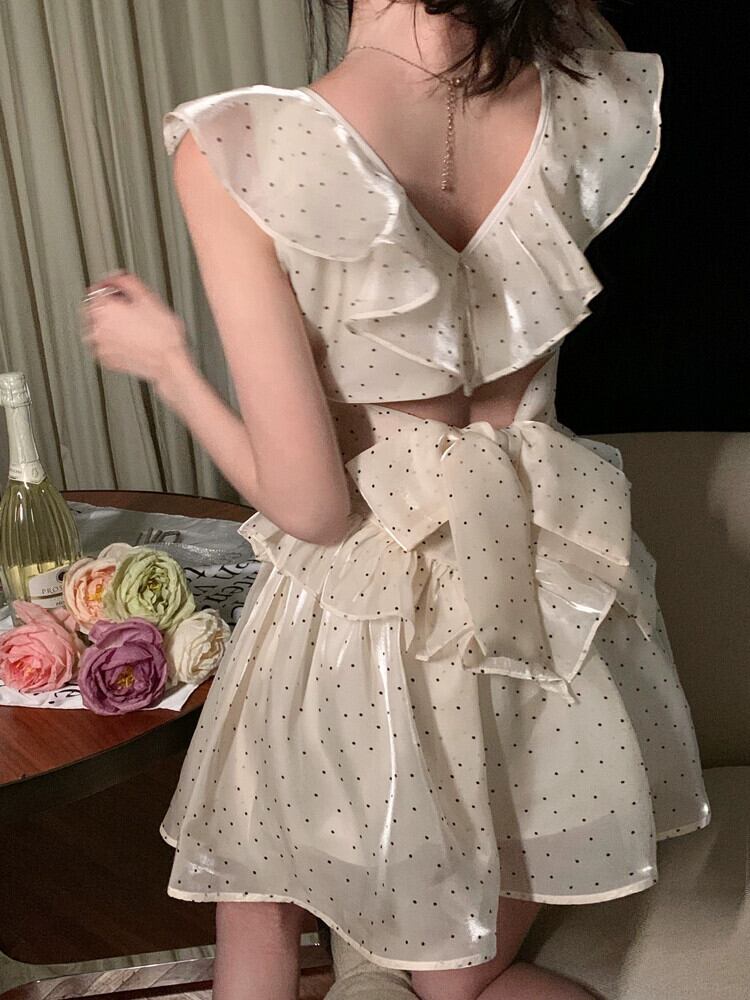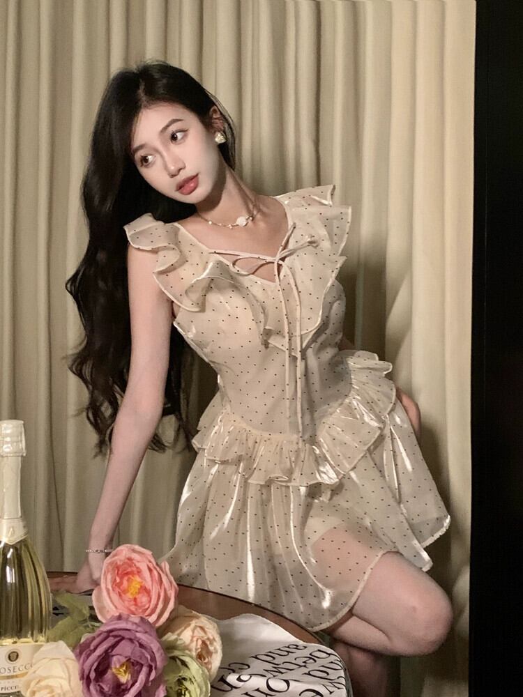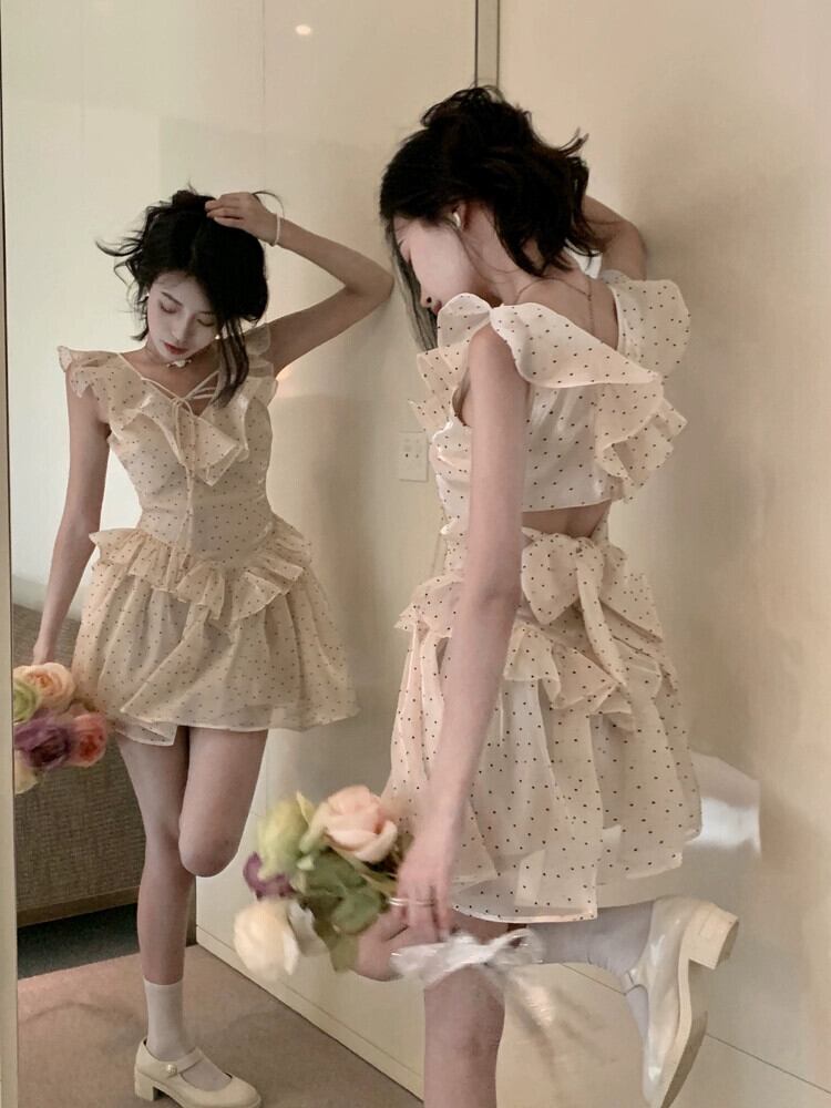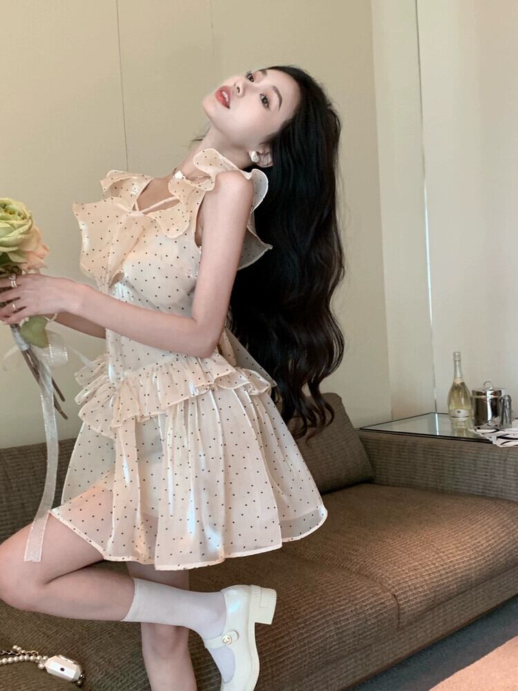 純粋な欲望蓮の葉エッジウェーブポイントドレス女性の夏の 2023 新しい甘いスタイルオールマッチ自己修養薄いケーキスカート 大人ガーリー スウィート キュート カジュアル サマー 夏物 0921936804479870