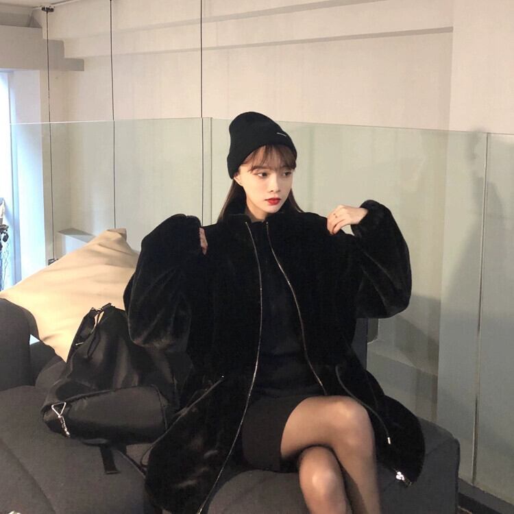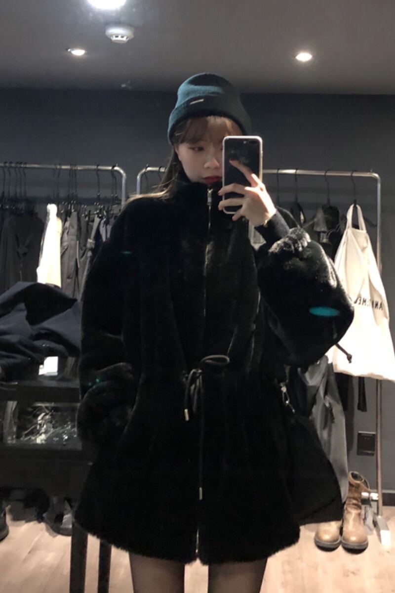 黒の高品質豪華な厚手のコートの女性の冬 2023 新しいスタイルの気質ウエスト痩身カーディガンコート ブラック ウィンター 冬物 0921911930591606