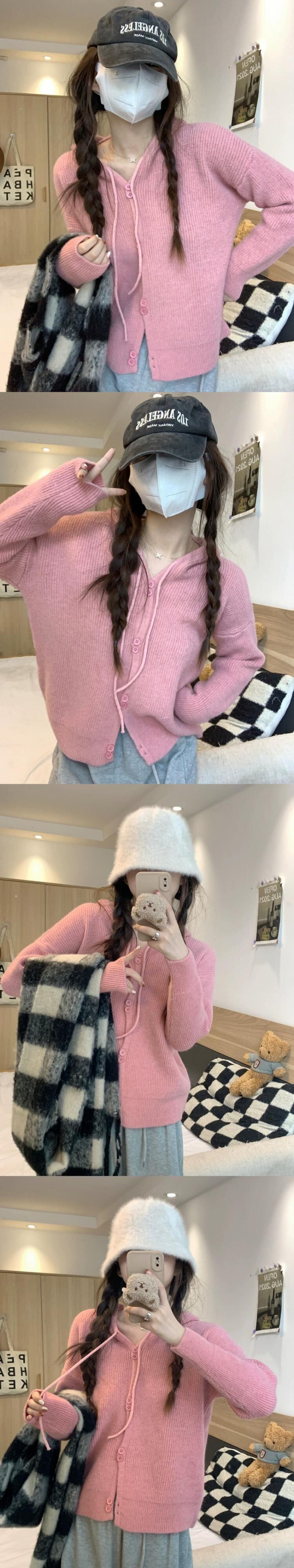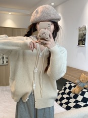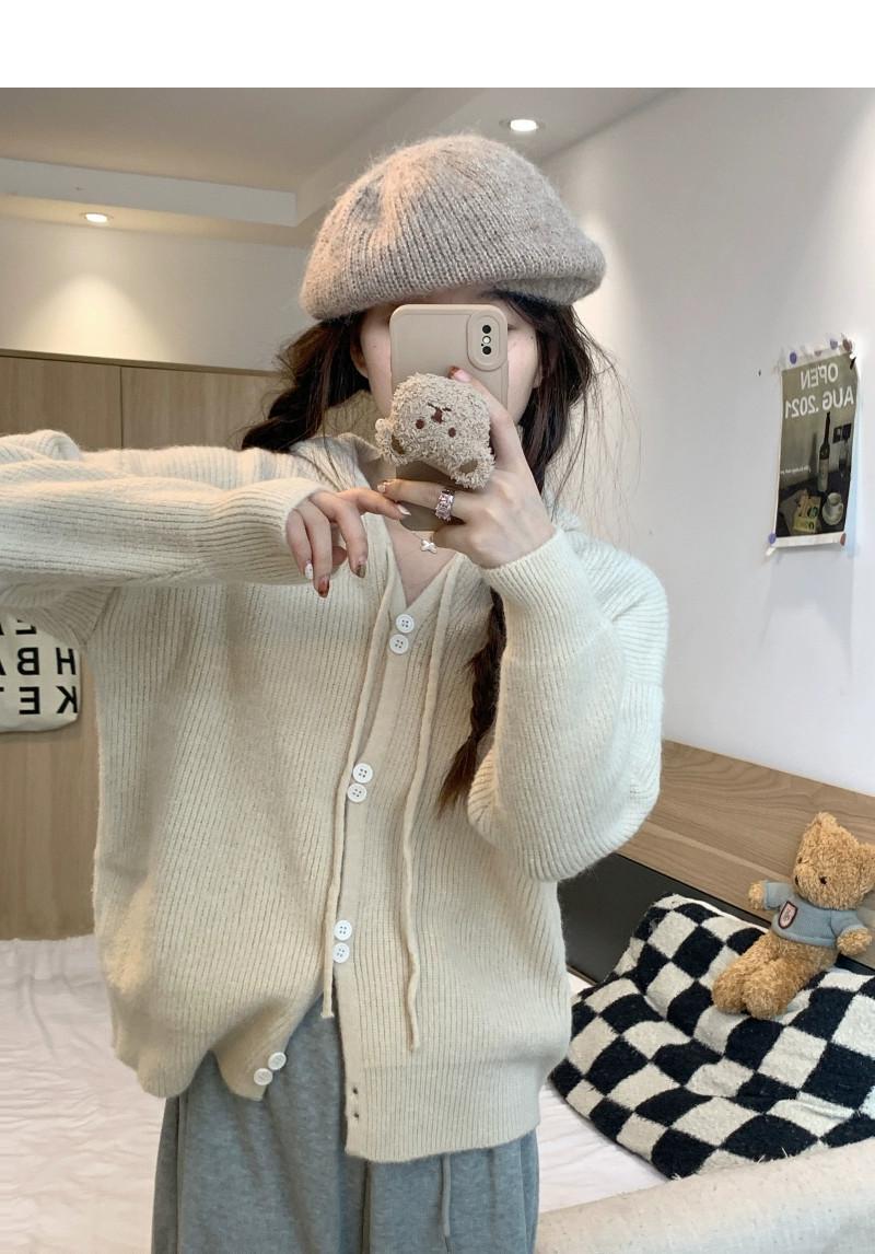 怠惰なスタイルのフード付き巾着ニットカーディガン女性の冬の 2023 新バージョンルーズカジュアルセータージャケットトップス ウィンター 冬物 0921971411524206