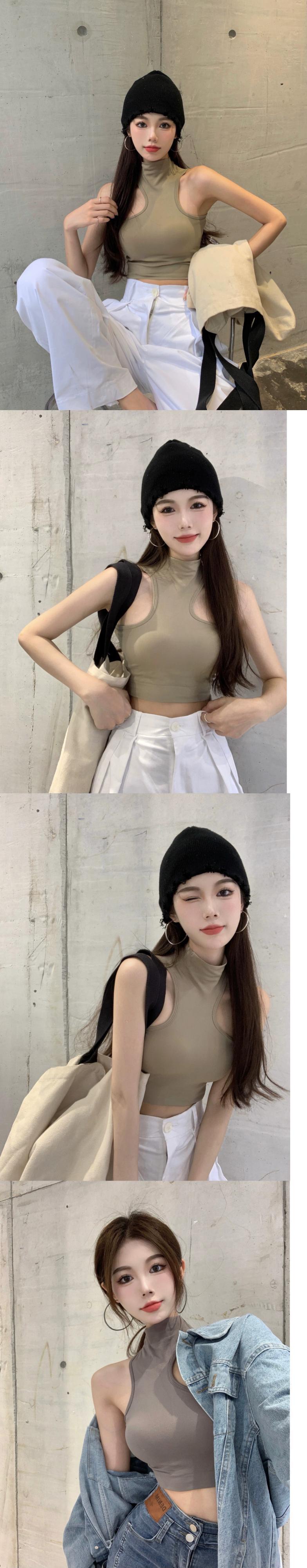 Ins不規則なハーフハイカラーベスト女性2023夏新デザイン自己修養感覚ショートインナートップ サマー 夏物 0921965031505806