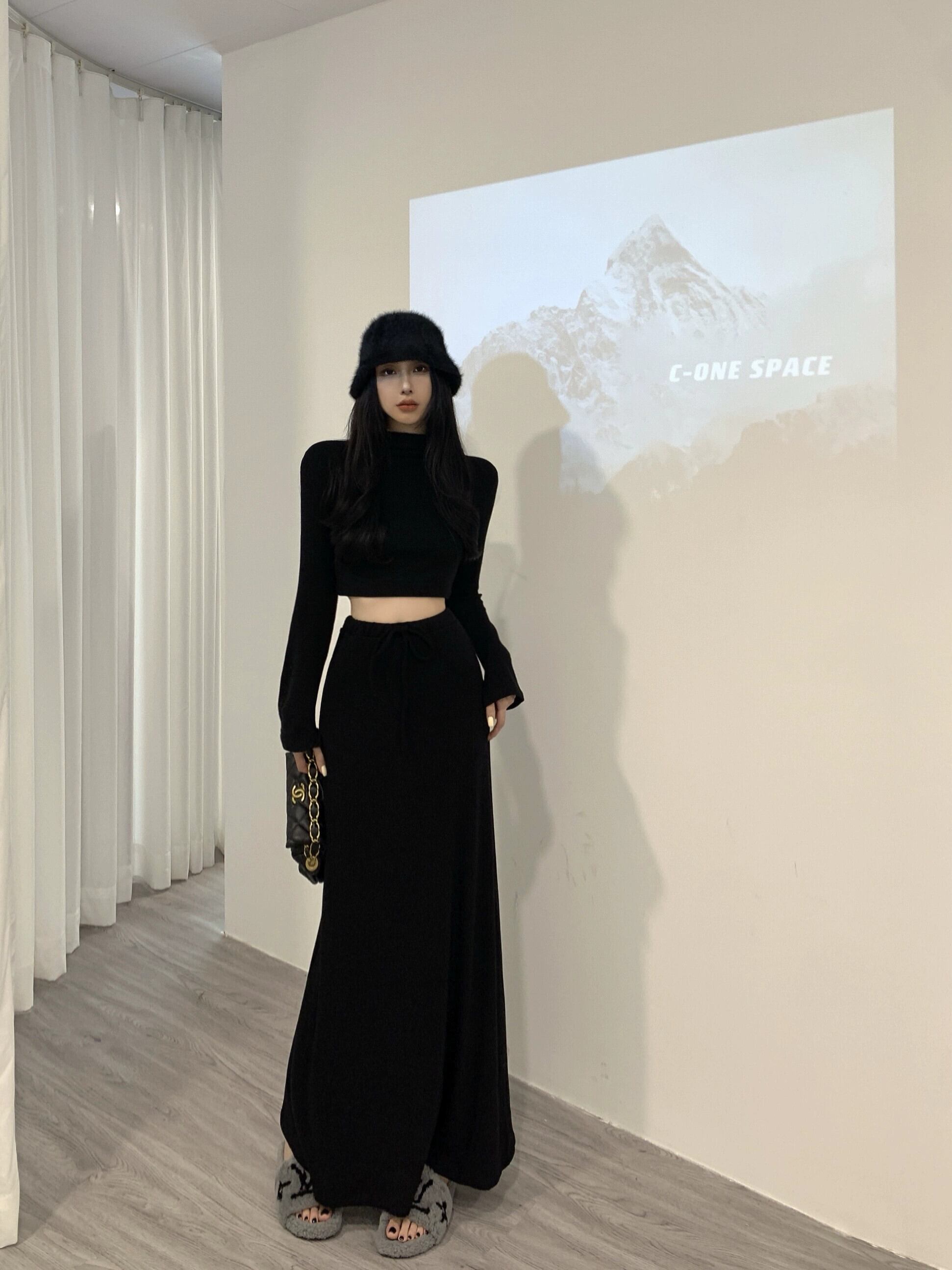 純粋な欲望ファッションスーツスカート女性の春と秋 2023 新しいショートスリムトップハイウエストロングスカート 2 点セット ハイウェスト スプリング 春物 オータム 秋物 0921953747658314