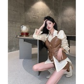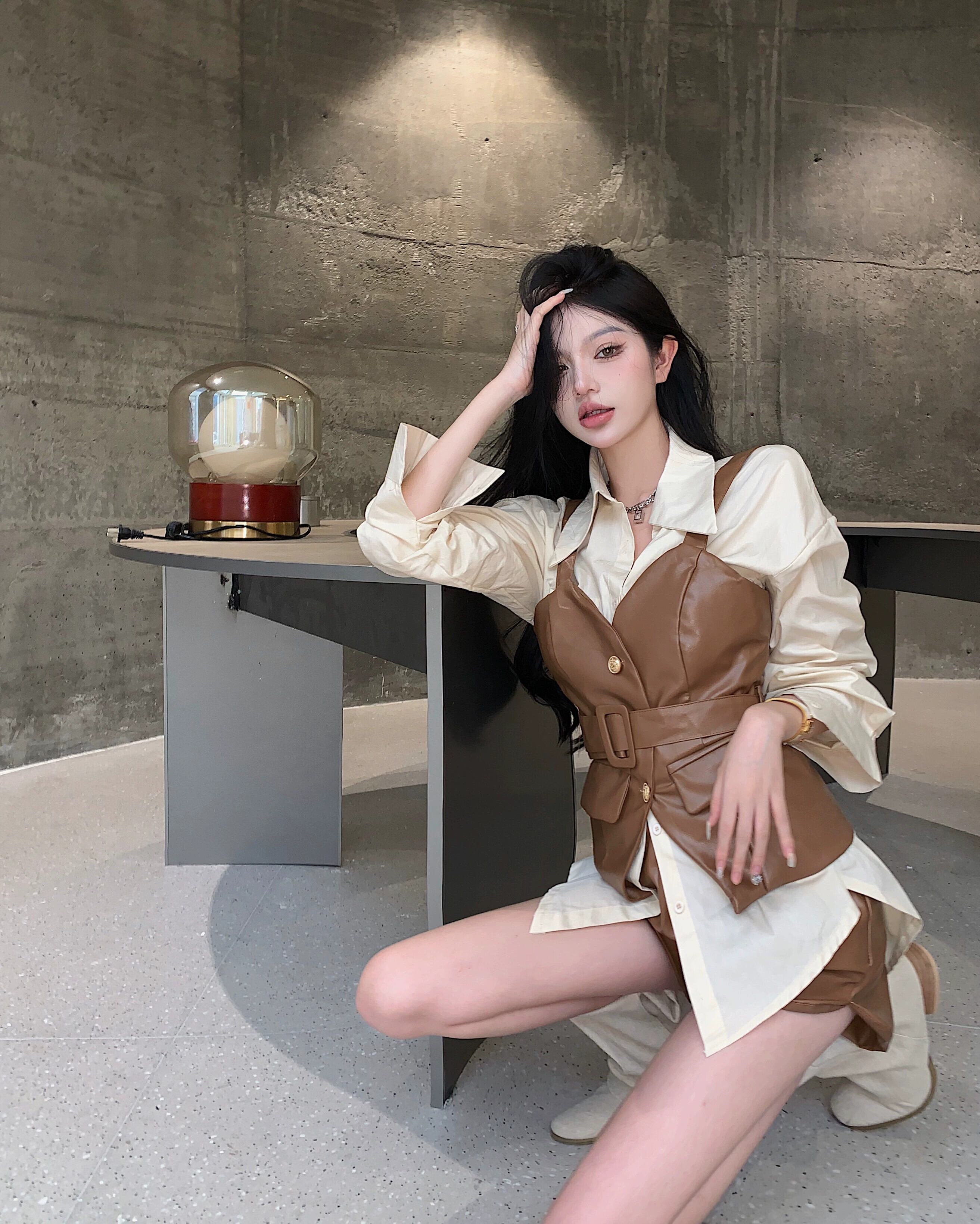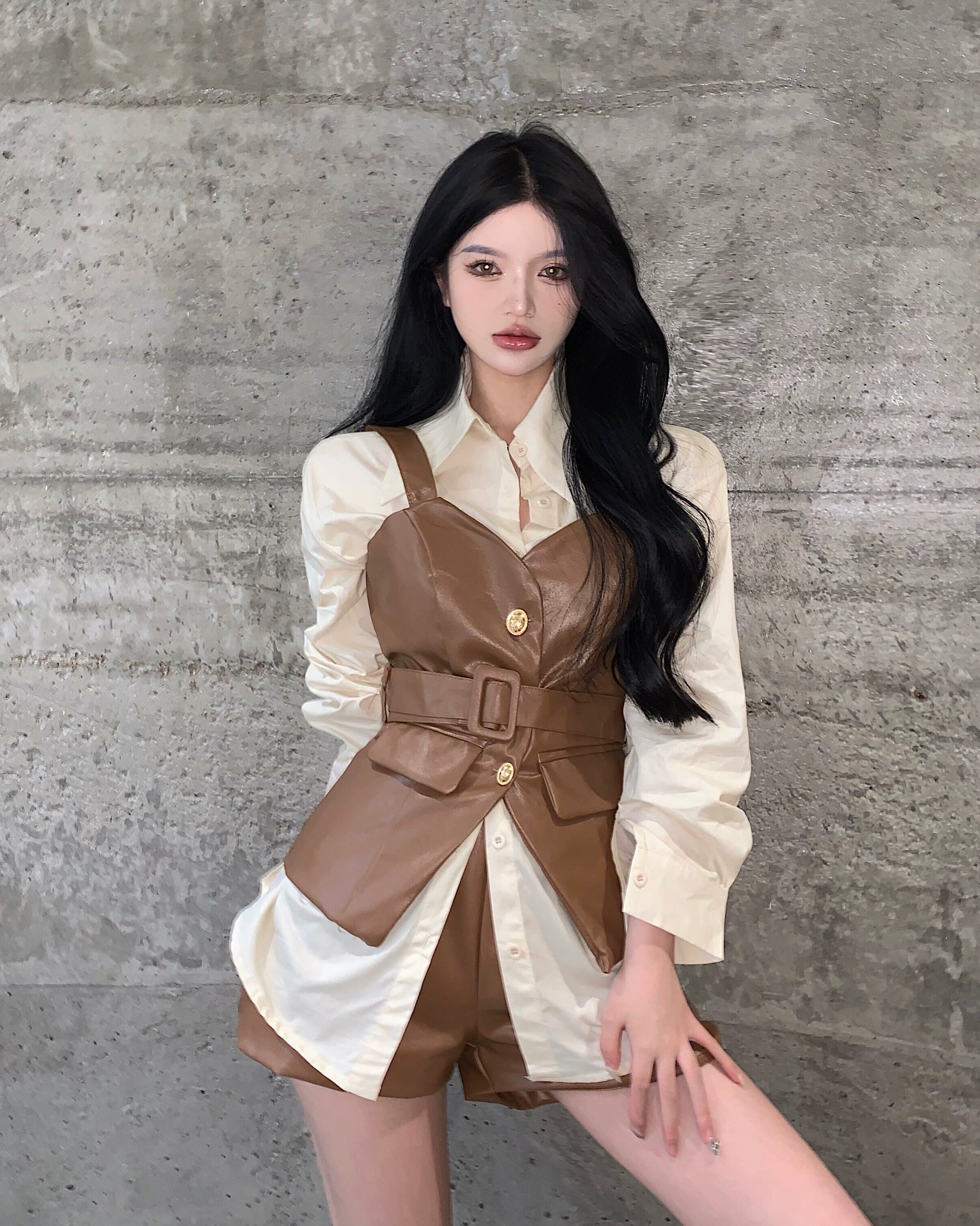 フレンチレトロなハイエンドファッションスーツの女性の夏の2023新しい長袖シャツレザーベストショーツ3点セット ロング サマー 夏物 ブルマー 0921923810302115