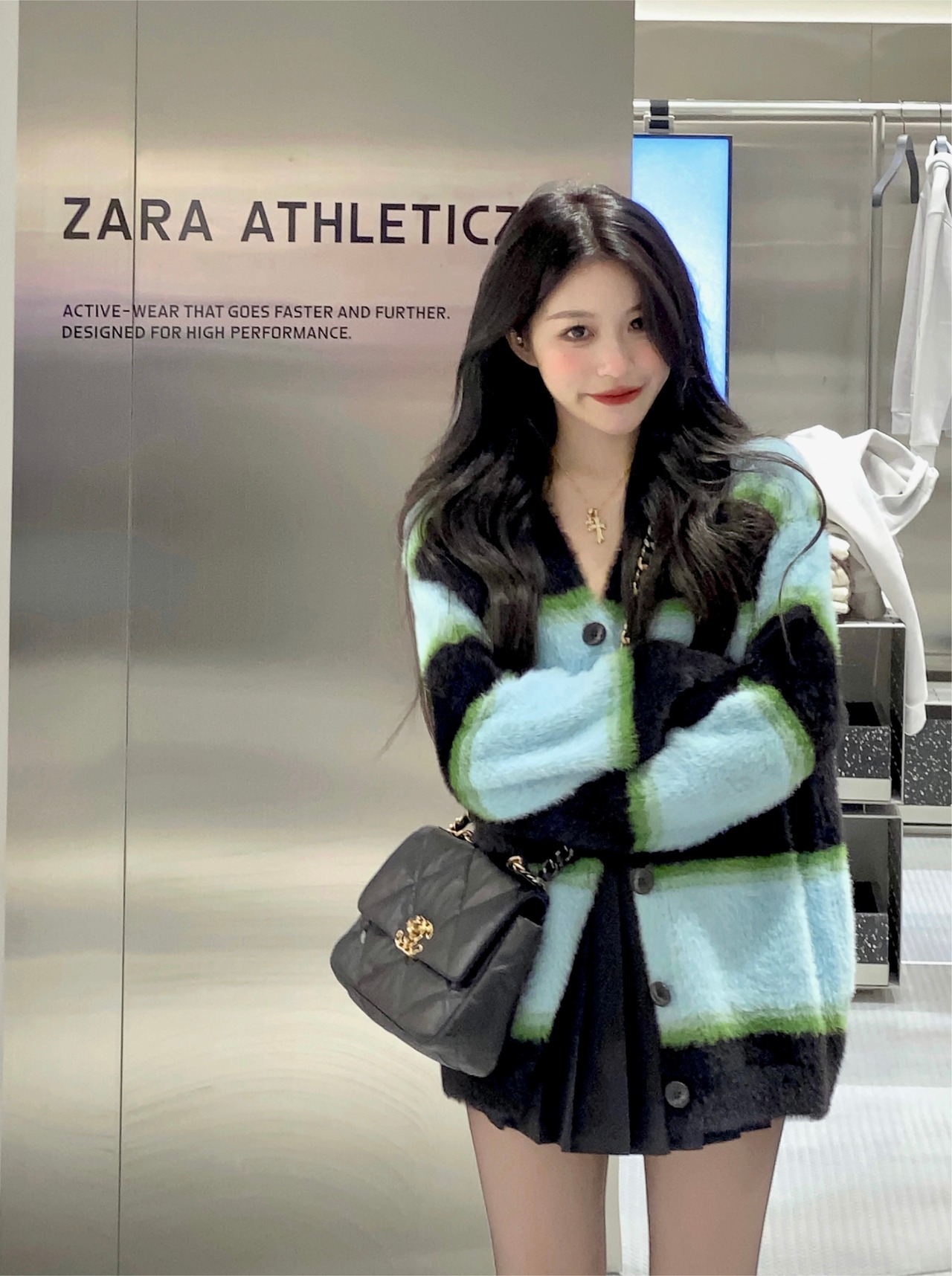 怠惰な高品質ストライプ V ネックセータージャケット女性の 2023 春の新しいスタイルのアウターウェアルーズニットカーディガントップ スプリング 春物 Vネック 0921934926565455