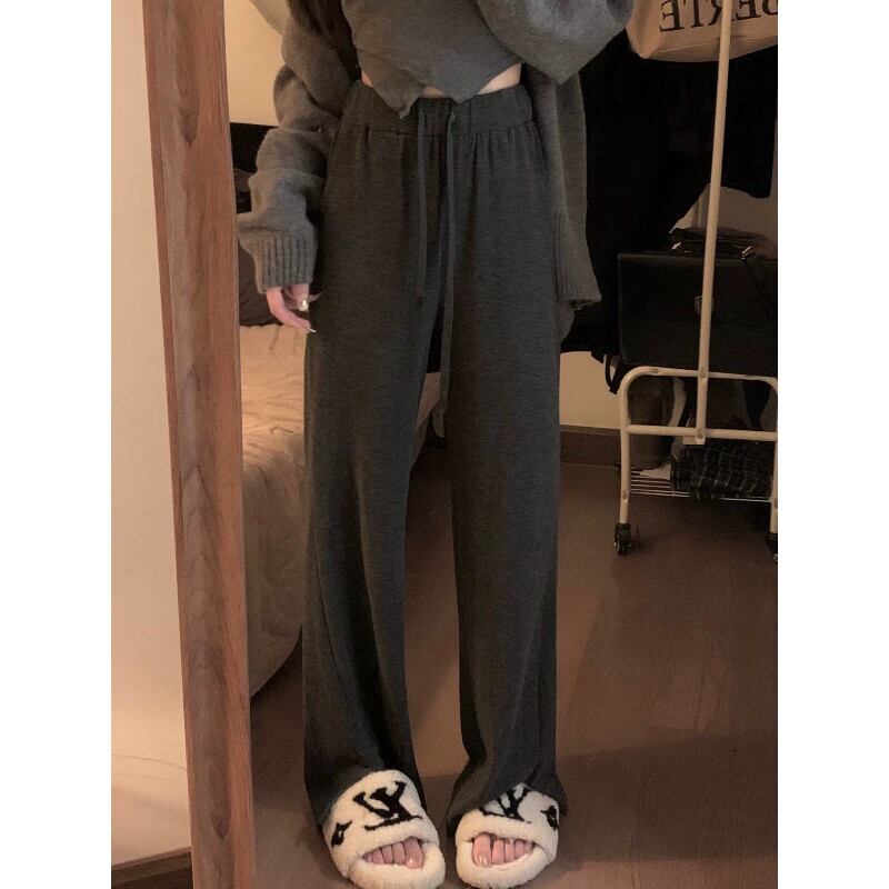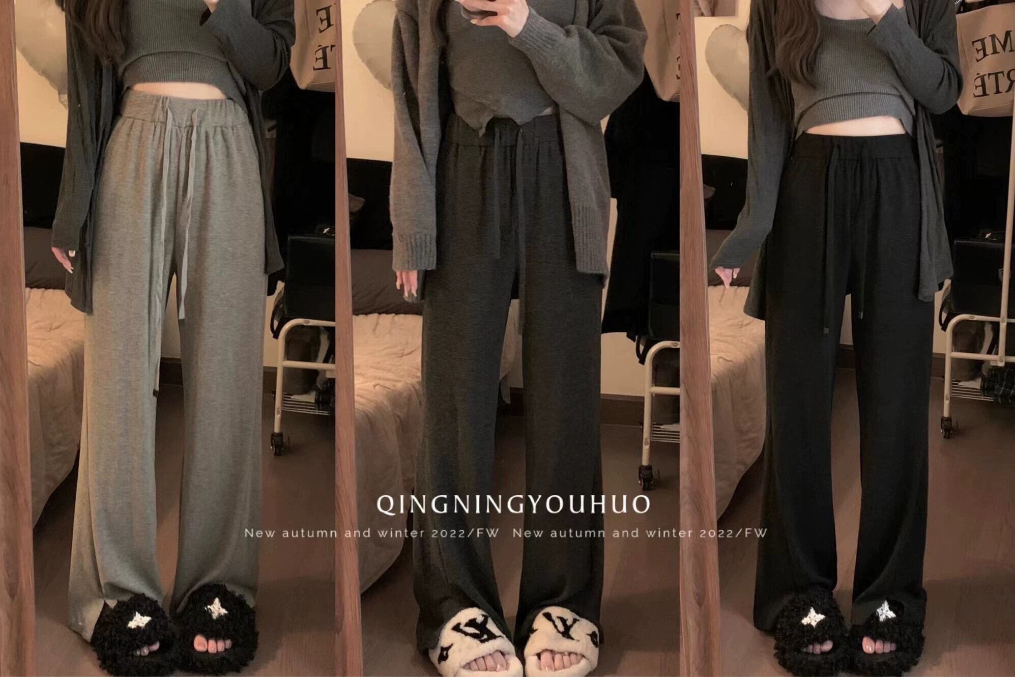 万能細身ハイウエストカジュアルパンツレディース2023春新作ゆったりワイドレッグデザイン感スリットロングパンツ スプリング 春物 092192998678295