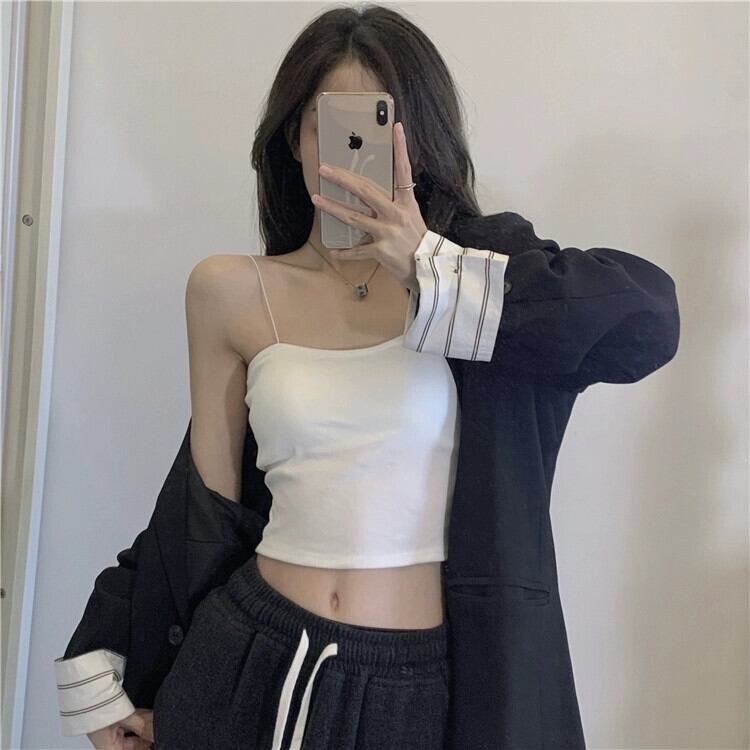 胸パッド付きホットショートセクションキャミソールレディースの2023年夏新作オールマッチデザイン、自己修養の感覚と薄いトップ潮流 サマー 夏物 0921927437807601