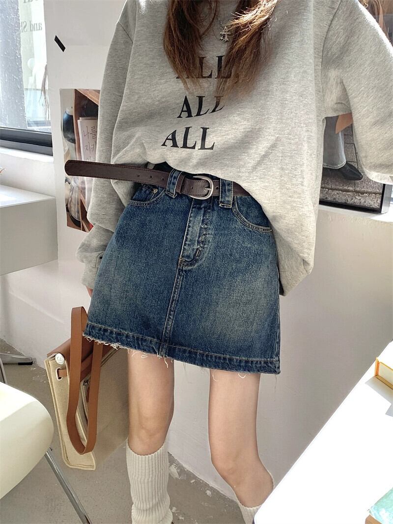 レトロ ' オールマッチ デニム スカート レディース 2023 夏の新しいハイウエスト痩身スタイル A ライン スカート潮 ハイウェスト サマー 夏物 Aライン 0921916206410078