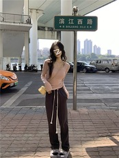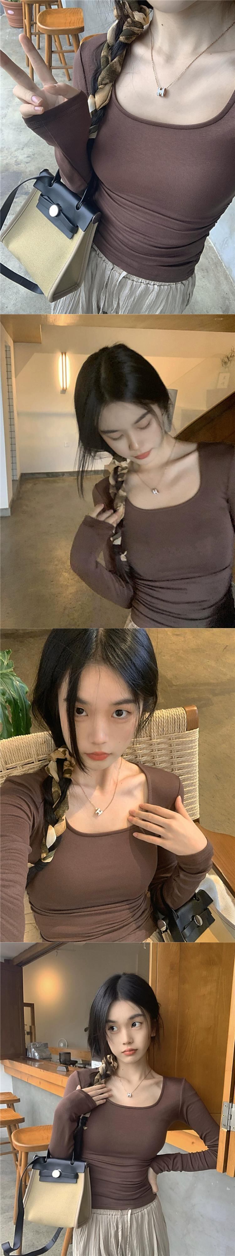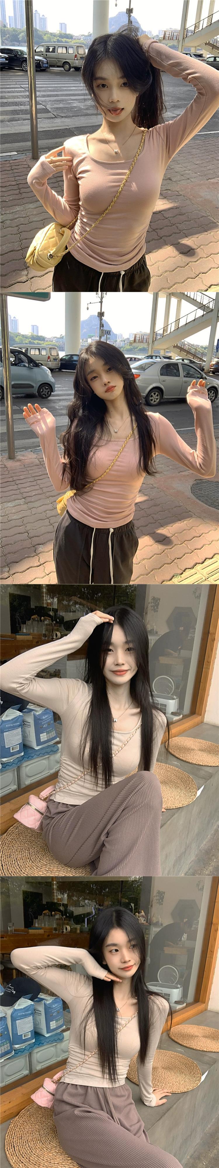 純粋な欲望スタイルのデザインセンス長袖 Tシャツレディース 2023 春の新作プリーツウエスト痩身ショートボトムシャツトップ ロング スプリング 春物 0921914793088421