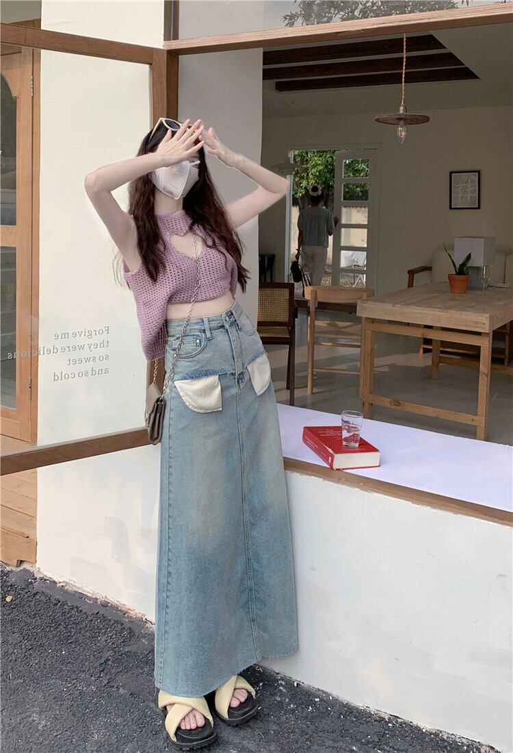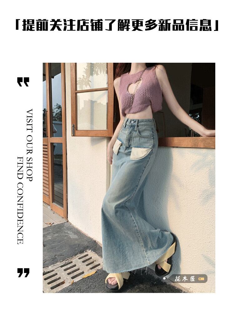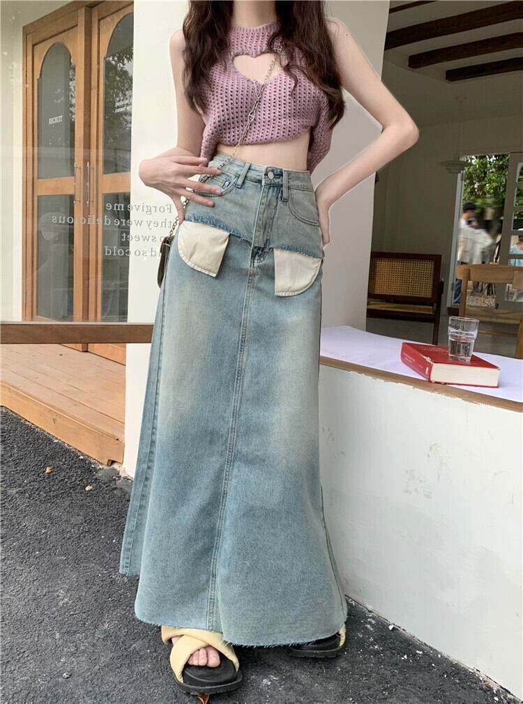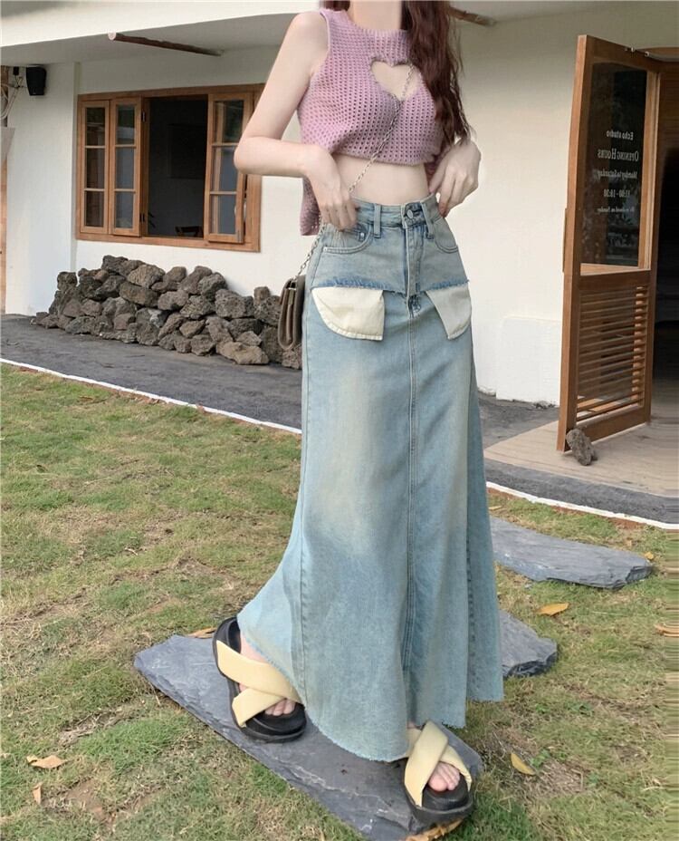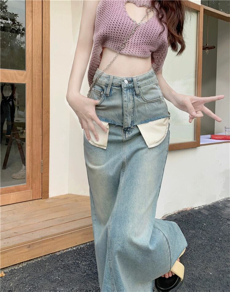 スパイスガールズ デニムスカート レディース 夏感覚 ニッチハーフスカート Aライン ミモレ丈スカート ウエストスリムパッケージ ヒップスカート サマー 夏物 0921998618802465