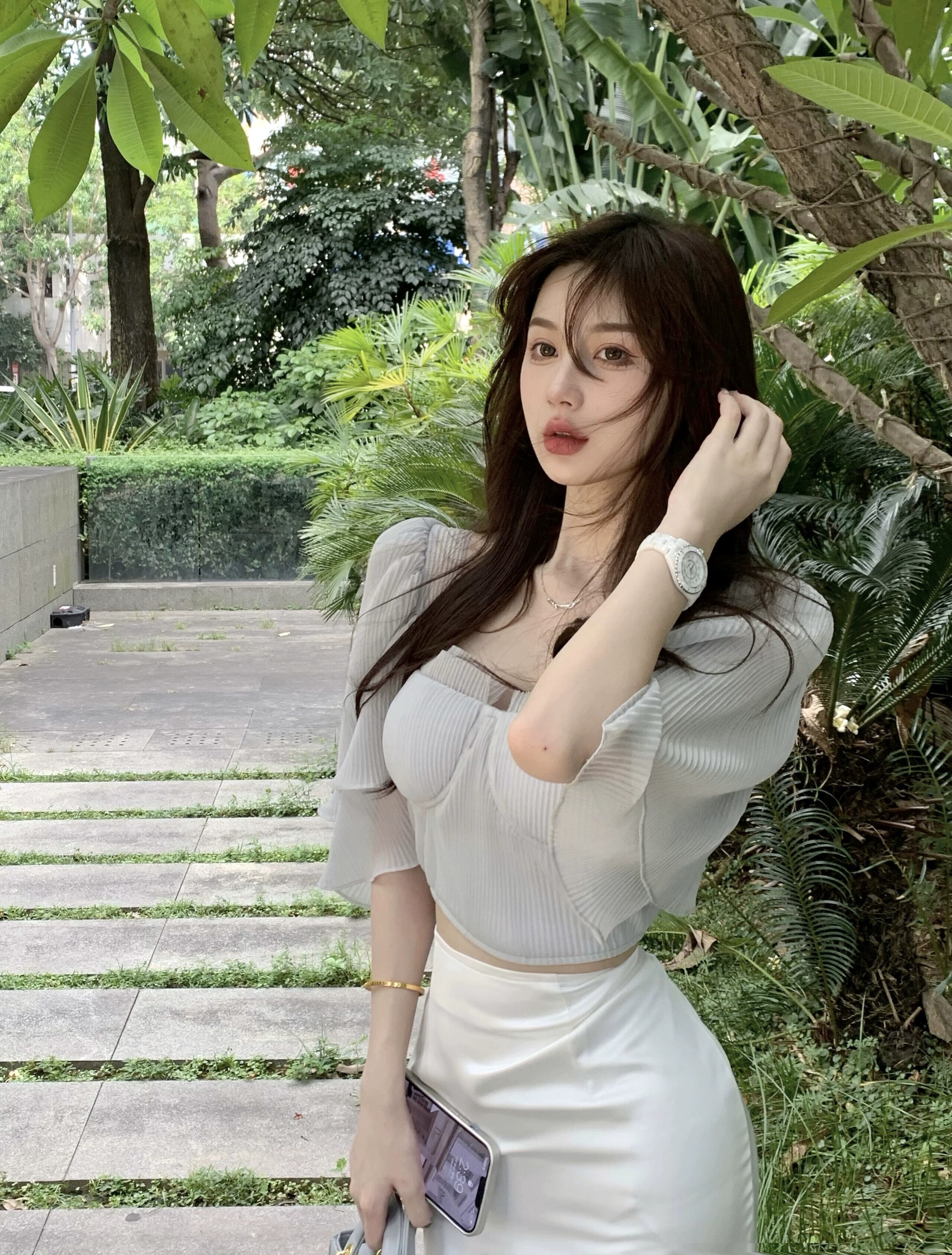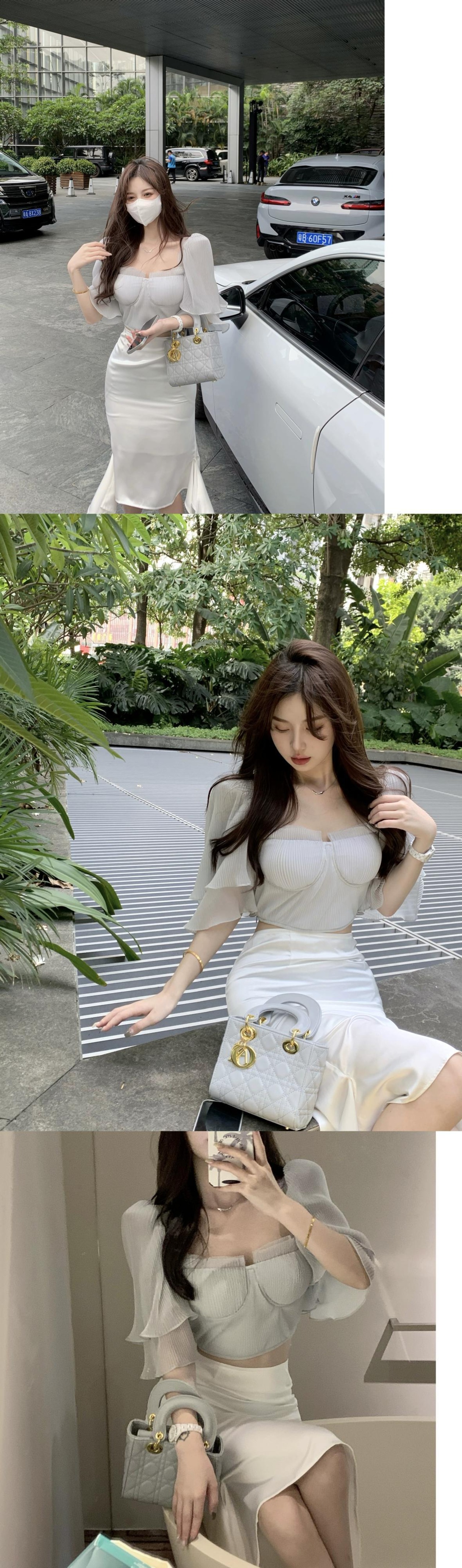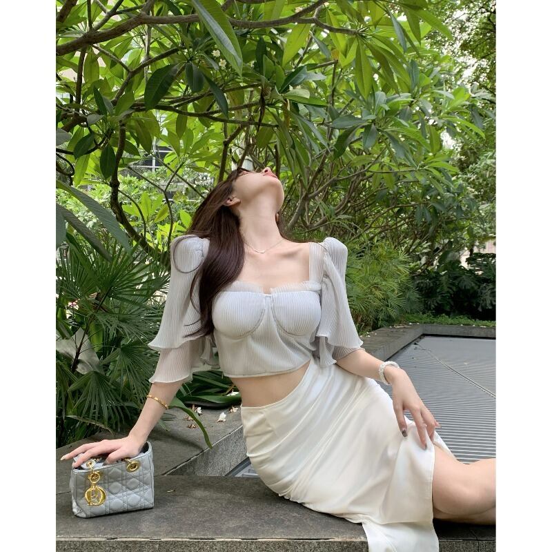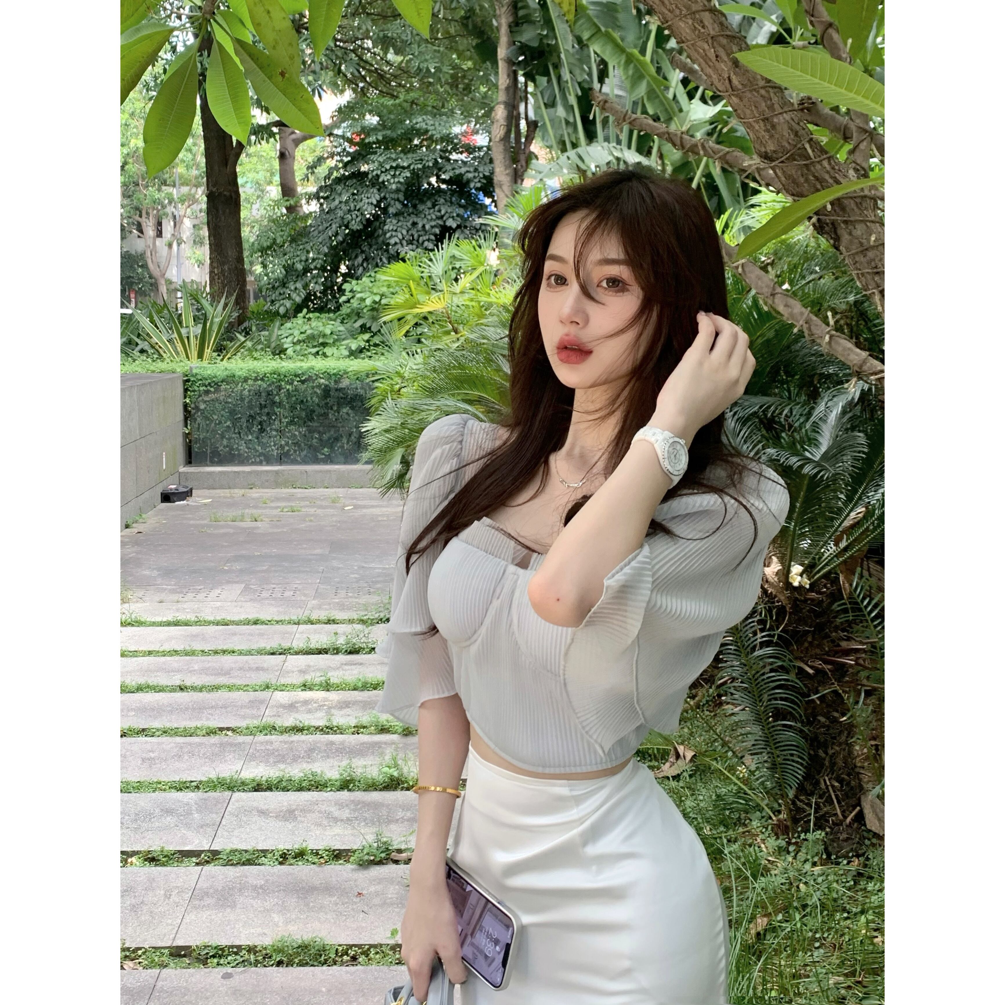 フランスの高級スーツ女性 2023 春新作パフスリーブ胸パッド付きトップシックなスカート 2 点セット スプリング 春物 0921986040309568
