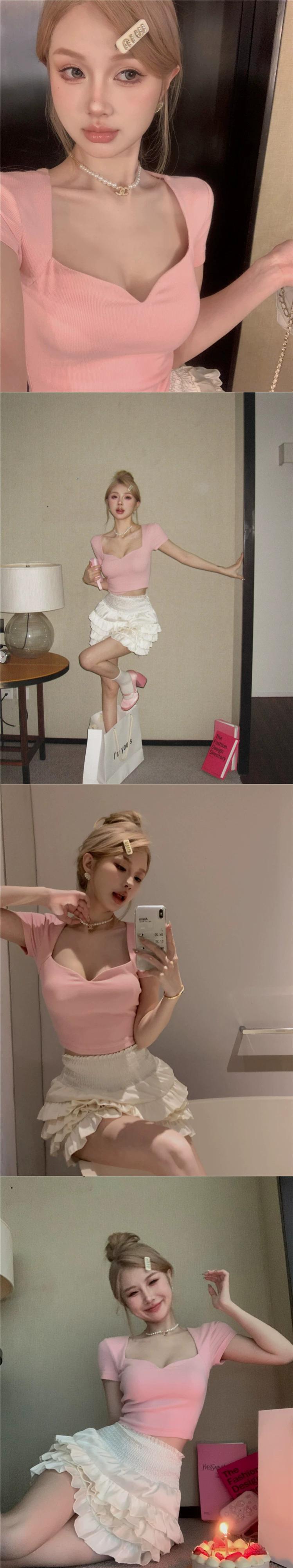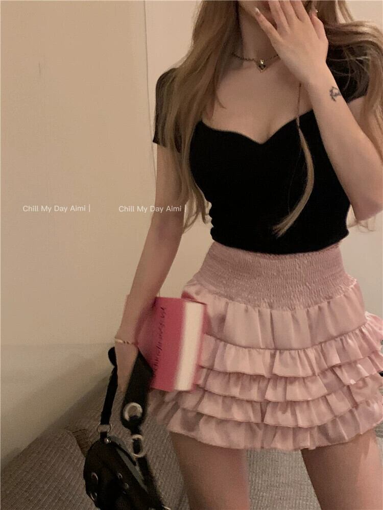 バレエ風スーツスカート女性 2023 夏の新しいスリム半袖トップハイウエストケーキショートスカート 2 点セット ハイウェスト サマー 夏物 0921955626656519