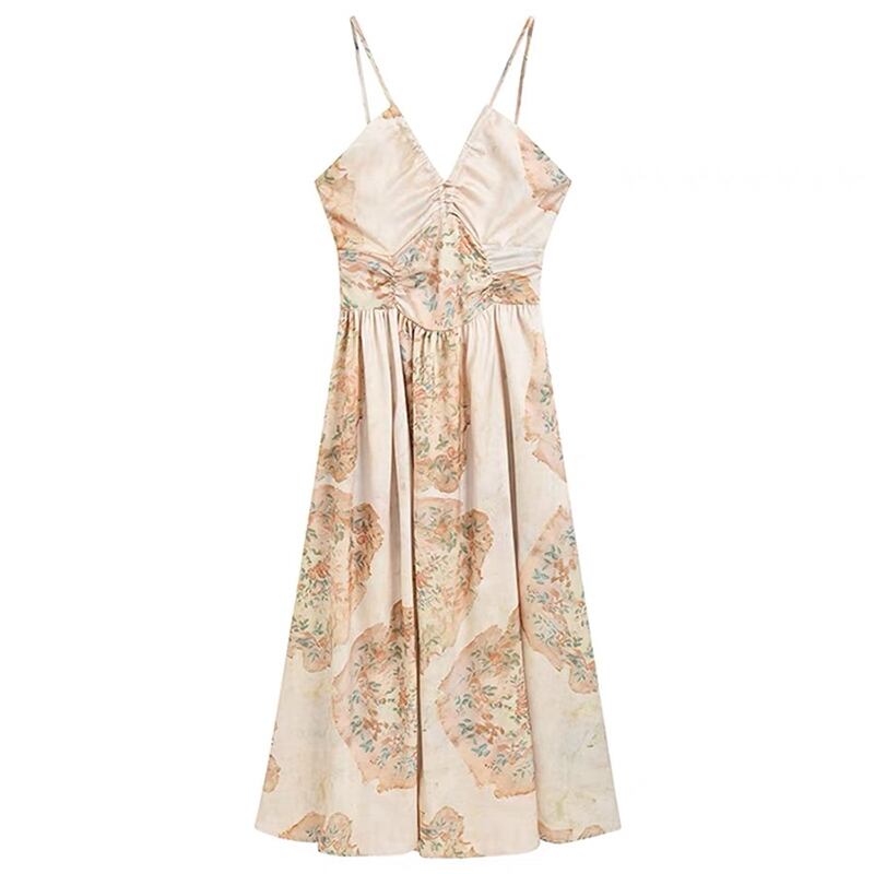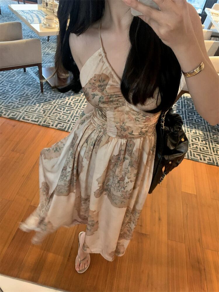 レトロな気質ホリデースタイルサスペンダードレス女性の夏の2023新しいミッドレングスウエストラインスリムAラインスカート サマー 夏物 0921944564753608