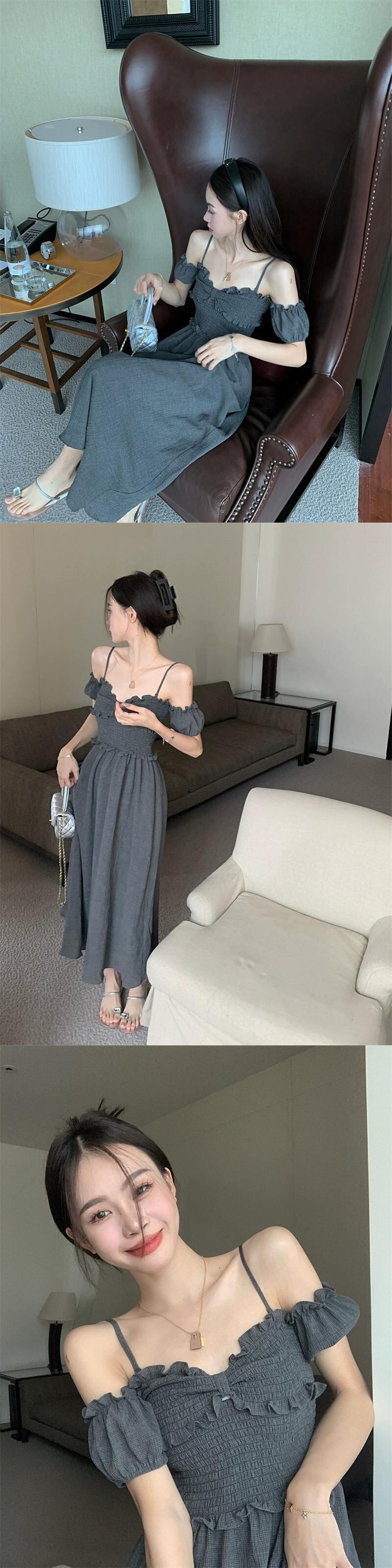 フランスのデザインセンスニッチサスペンダードレス女性の夏の 2023 新しいミッドレングスストラップレスウエスト痩身スカート サマー 夏物 092191544764455