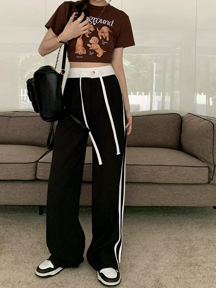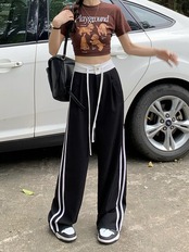 ステッチレースハイウエストドレープスリムカジュアルパンツ女性の夏の2023新しい気質オールマッチスーツモップパンツ潮 ハイウェスト サマー 夏物 0921961490478796