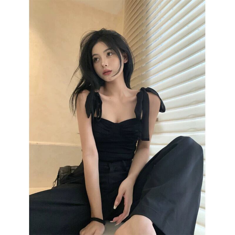 -end ブラック ストラップ チューブ トップ サスペンダー レディース 夏 2023 新しいショート セクション スリム スリム ボトミング ノースリーブ トップ サマー 夏物 0921956390300189