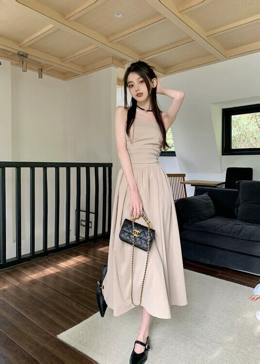 レトロな気質ニッチチューブトップドレス女性の夏の 2023 新しいミッドレングスプリーツウエスト痩身スカート サマー 夏物 0921928782396850