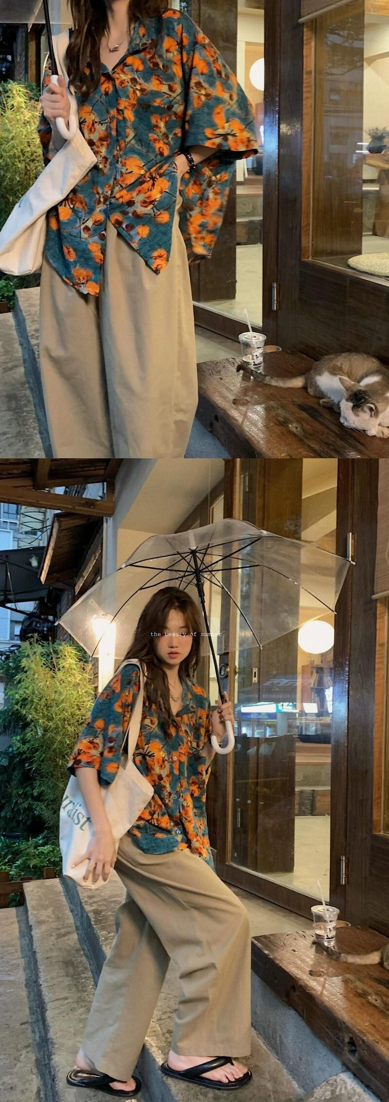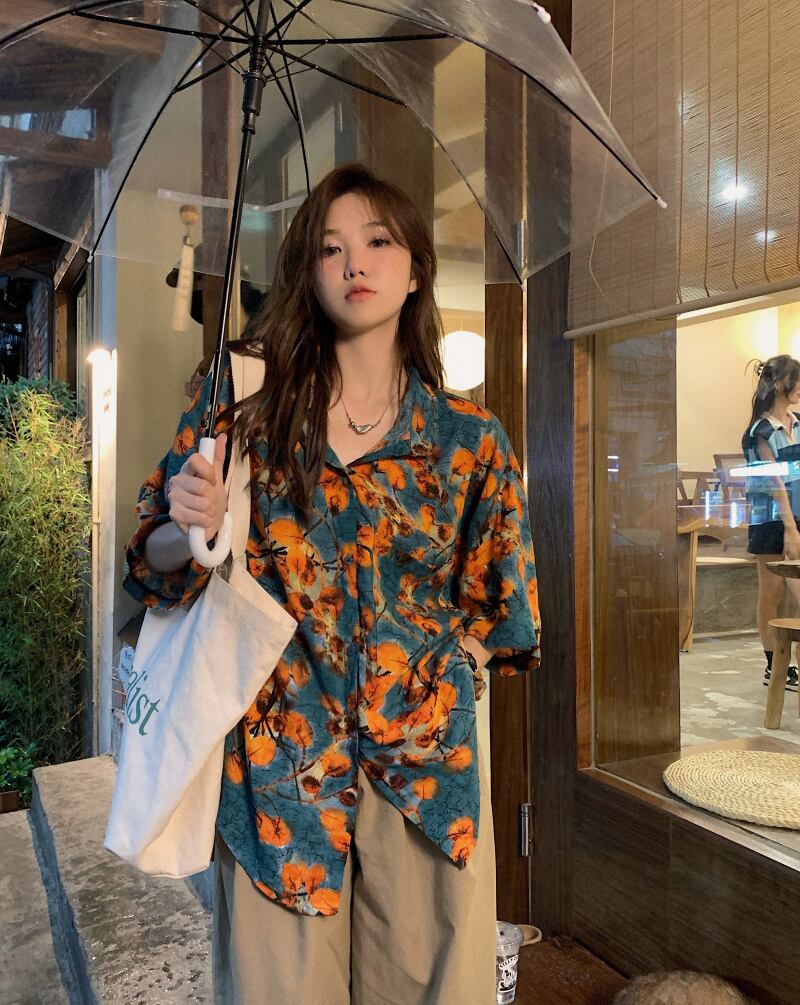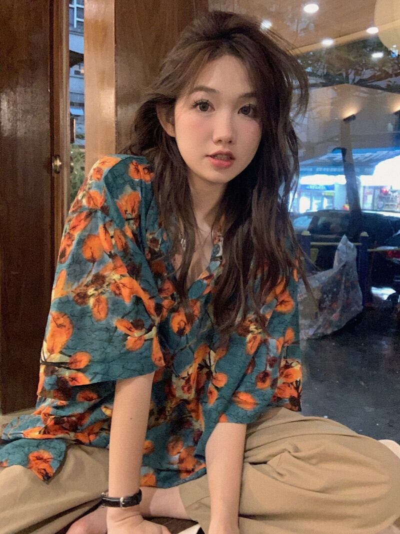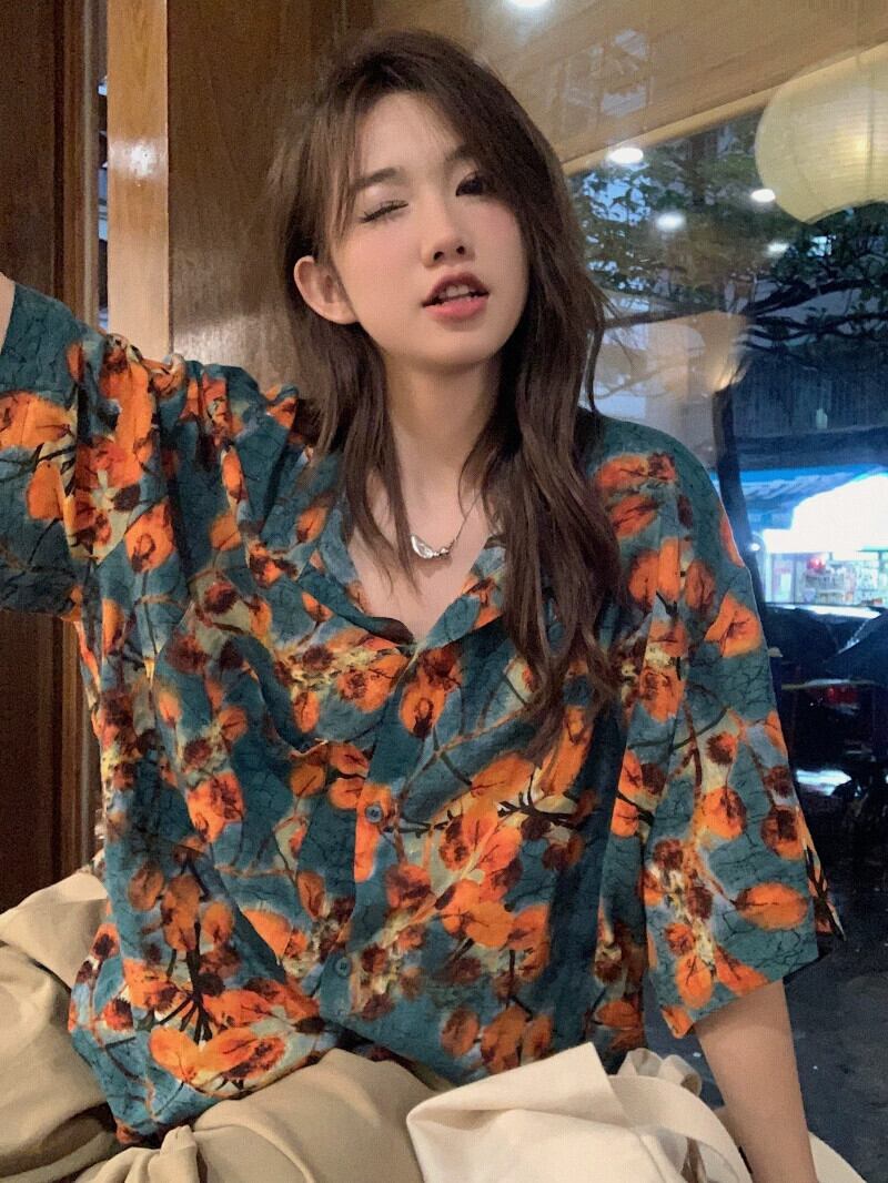 香港スタイルのレトロ半袖フラワーシャツ女性の夏の 2023 新しいデザインセンスニッチファッションルーズオールマッチシャツ サマー 夏物 フラワーデザイン 09219211209528