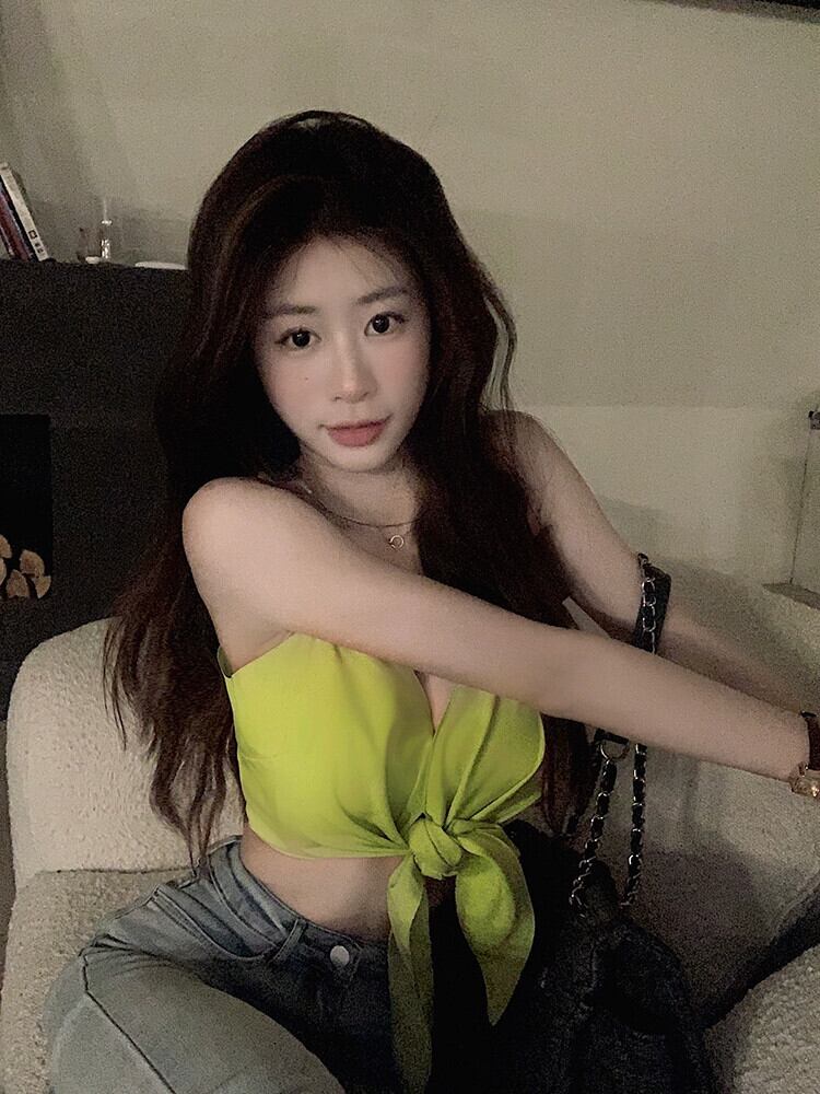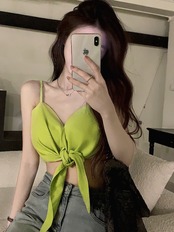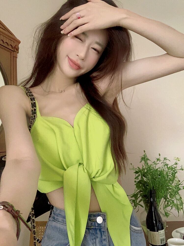 グリーンちょう結びキャミソール女性の夏 2023 新しいセクシーなショートセクションスリムスリムトップ潮 リボン サマー 夏物 0921942359950940