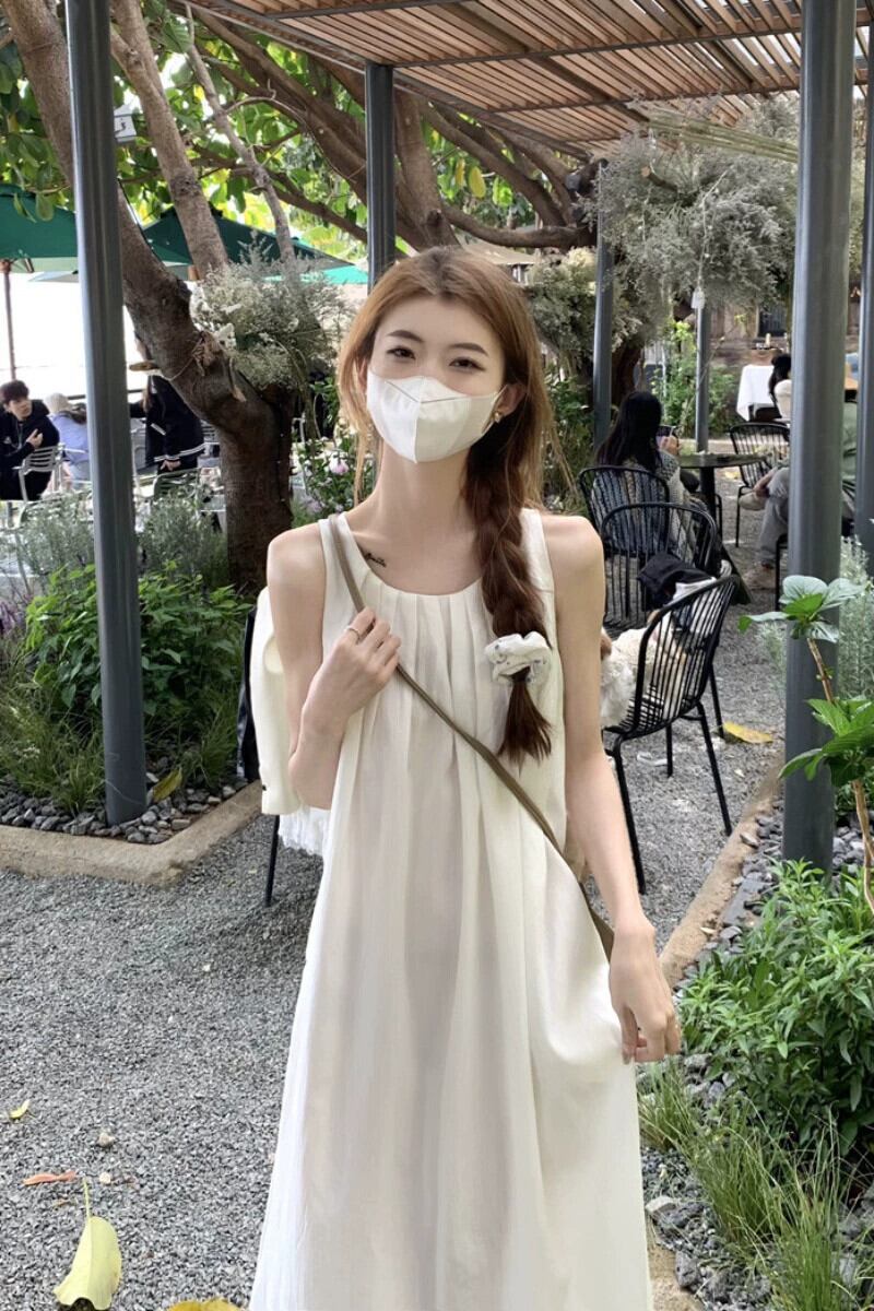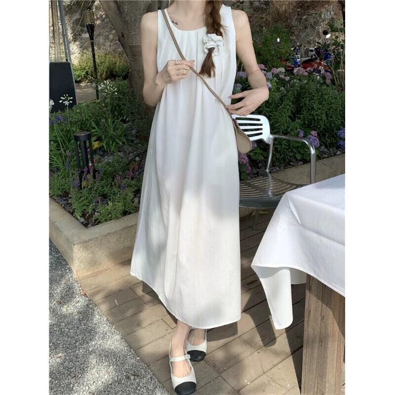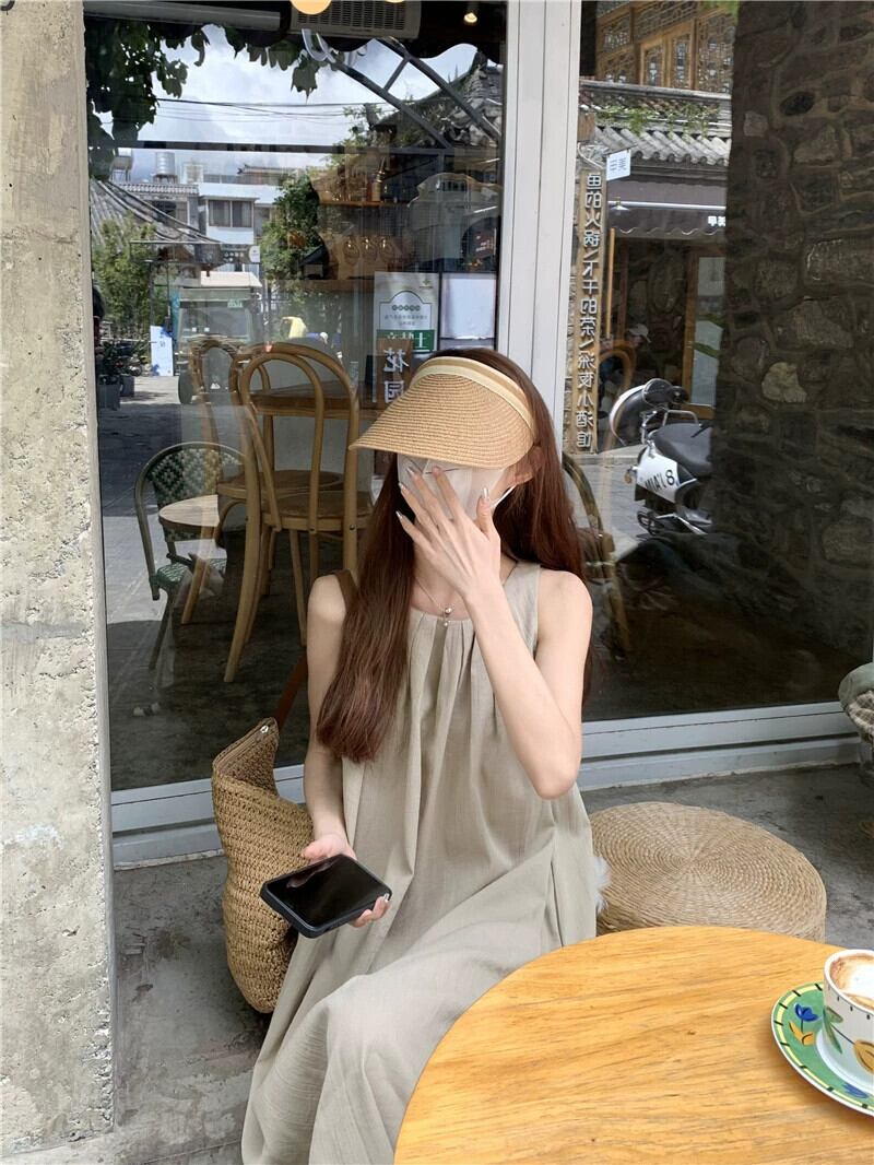 ホリデースタイルソリッドカラーノースリーブベストドレス女性の夏の2023新しいオールマッチルーズスリムボトムミッドレングススカート サマー 夏物 0921997683006804