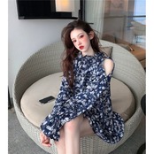 フレンチスタイル怠惰なスタイルのストラップレス長袖花柄ドレス女性の夏の新しいレトロなルーズチュチュスカートショートスカート ロング サマー 夏物 パニエ ペチコート 0921994585714837